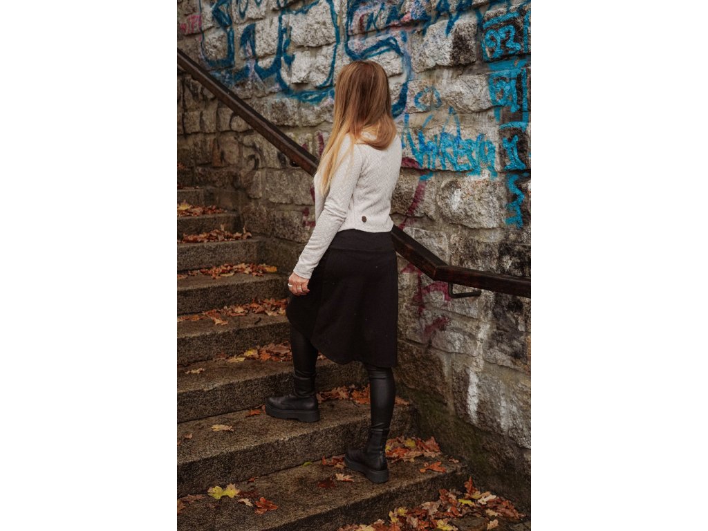 Dámská sukně áčkového střihu s kapsičkou. Zadní díl je lehce prodloužený. Vyšité logo BM v levém spodním rohu zadního dílu. Skvěle kombinovatelná jako komplet s našimi saky, ale lze ji nosit i jako volnočasovou. Nemá podšívku, dá se i tak nosit na punčochy i holé nohy.
