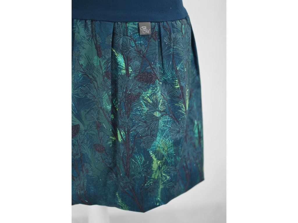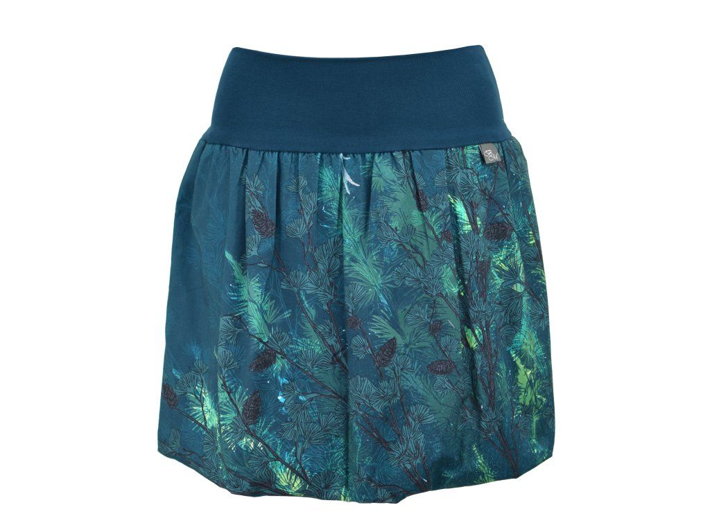 Dámská sukně balonového střihu s dvojitým elastickým pasovým okrajem vhodným pro většinu velikostí. Podšité polyesterovou látkou, která je vhodná jak na punčochy, tak holé nohy a sukně se dá nosit celoročně. Z rubu elastického pasu je nechán otvor na případné vložení gumy na zpevnění či stažení pasu – vhodné pro velikost XS.