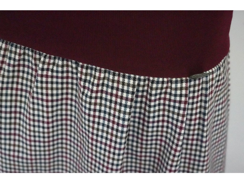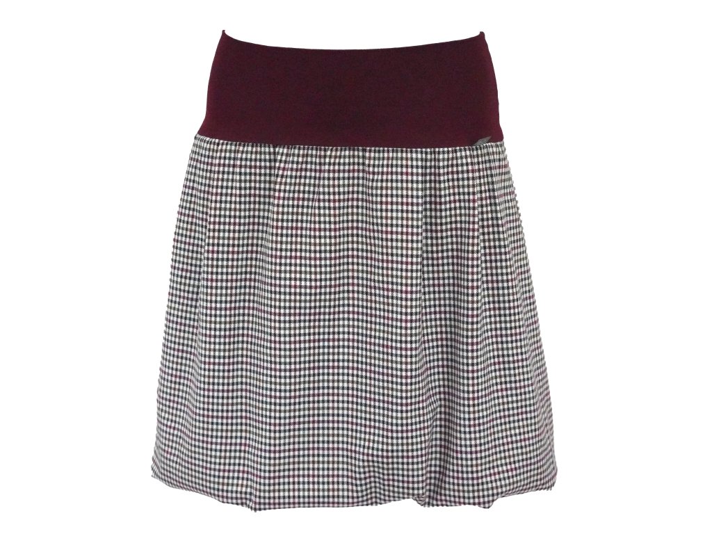 Dámská sukně balonového střihu s dvojitým elastickým pasovým okrajem vhodným pro většinu velikostí. Podšité polyesterovou látkou, která je vhodná jak na punčochy, tak holé nohy a sukně se dá nosit celoročně. Z rubu elastického pasu je nechán otvor na případné vložení gumy na zpevnění či stažení pasu – vhodné pro velikost XS.