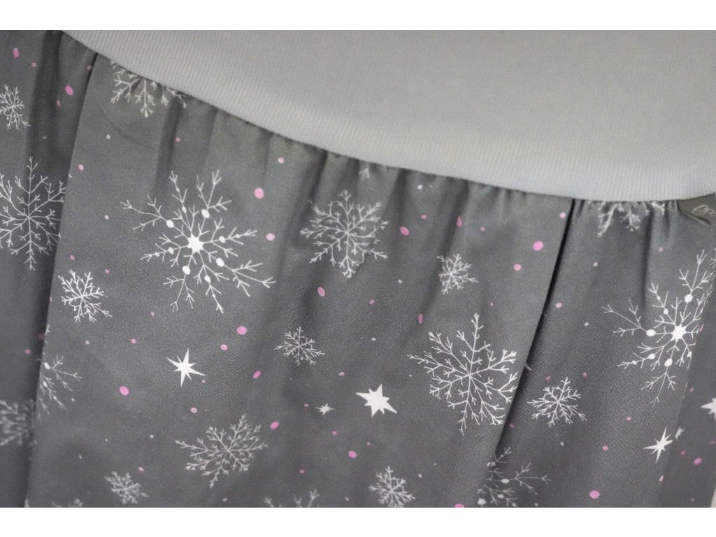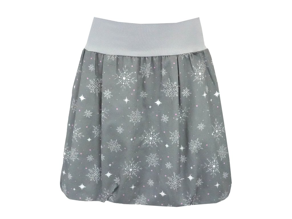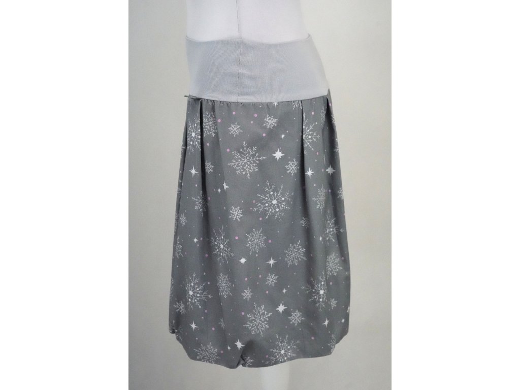 Dámská sukně balonového střihu s dvojitým elastickým pasovým okrajem vhodným pro většinu velikostí. Podšité polyesterovou látkou, která je vhodná jak na punčochy, tak holé nohy a sukně se dá nosit celoročně. Z rubu elastického pasu je nechán otvor na případné vložení gumy na zpevnění či stažení pasu – vhodné pro velikost XS.
