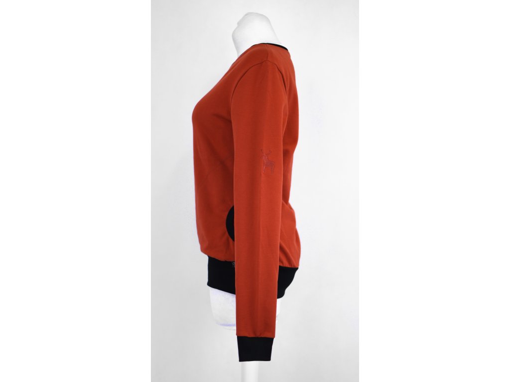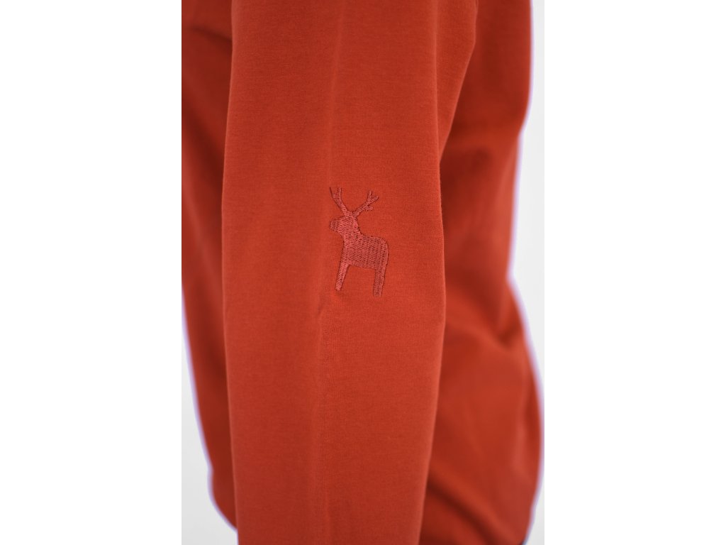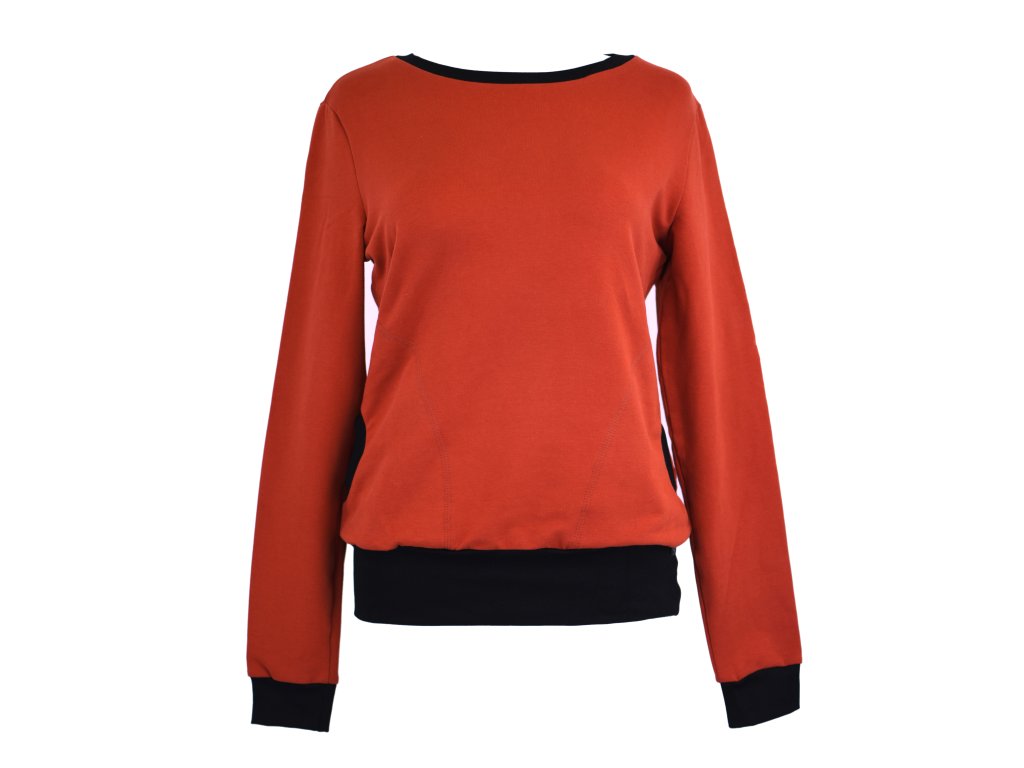 Dámská mikina prodloužené délky a s prodlouženými rukávy. Rovnější v pase, kapsy v bocích, průkrčník a rukávy jsou lemované úpletem. Zdobená výšivkou. Látka s certifikátem GOTS.
