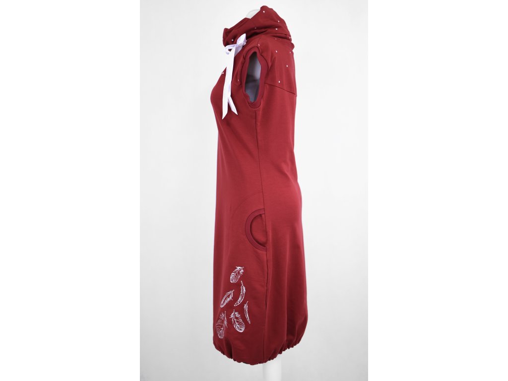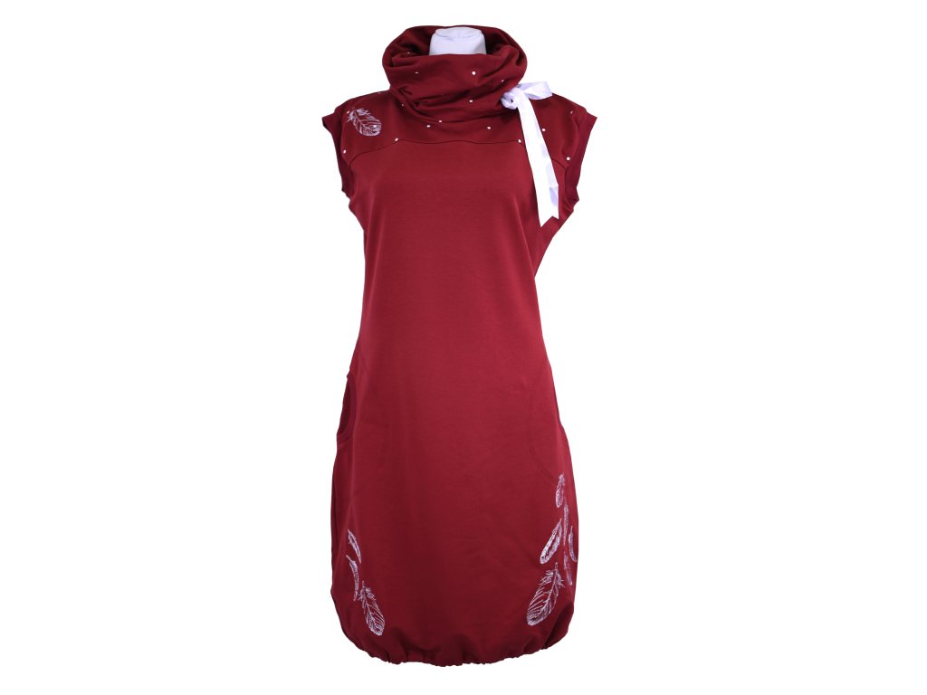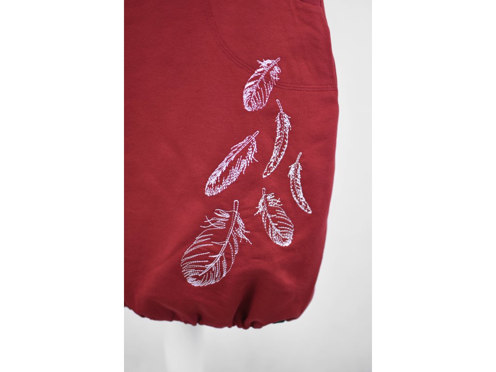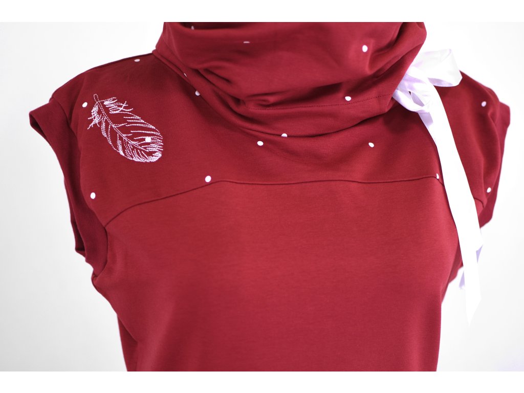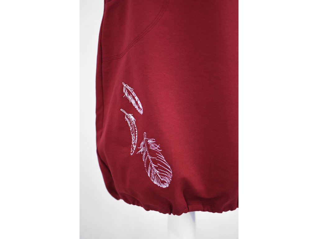 Dámská šatovka projmutá do pasu a volnějšími boky. Má přinechané rukávky lemované úpletem s dostatečným prostorem na vrstvení, dole je stažená do gumičky (otvorem si ji můžete vyndat nebo povolit/utáhnout). Šatovka je určená k vrstvení – podvléknete tričkem a punčochami nebo legínami a hurá do světa. Skvěle se unosí s tričky všemožných barev nebo s barevnými punčochami. Límec se dá stáhnout stuhou provlečenou otvorem uvnitř. Stuha se dá lehce vyjmout i svépomocí znovu vložit... :)