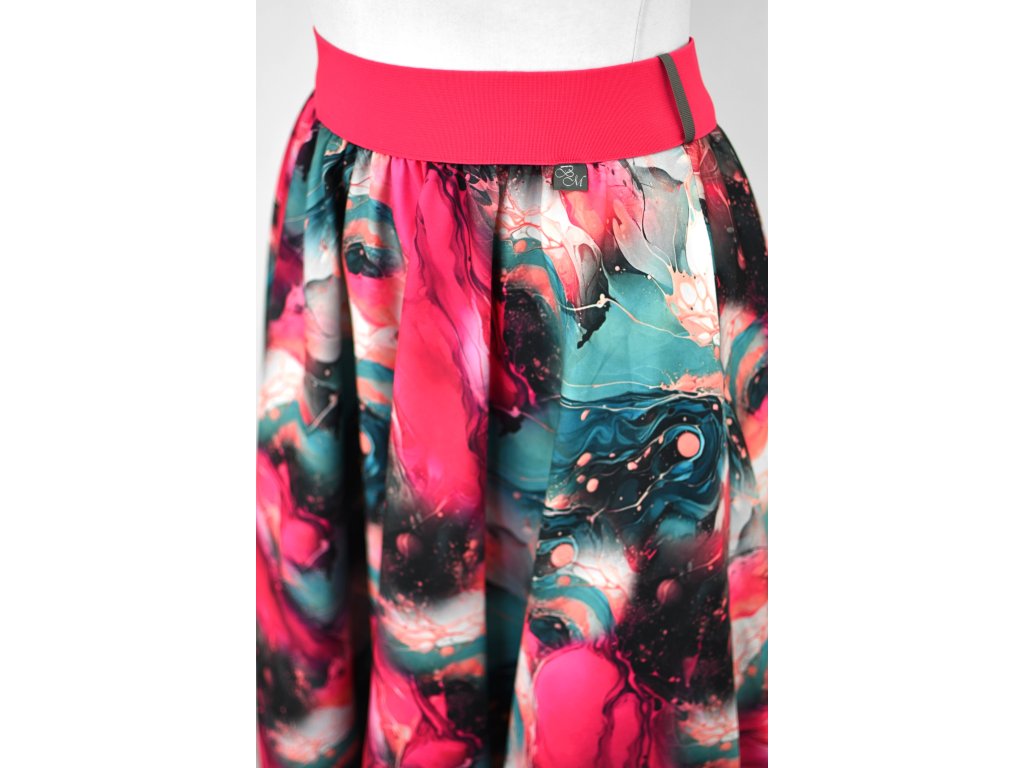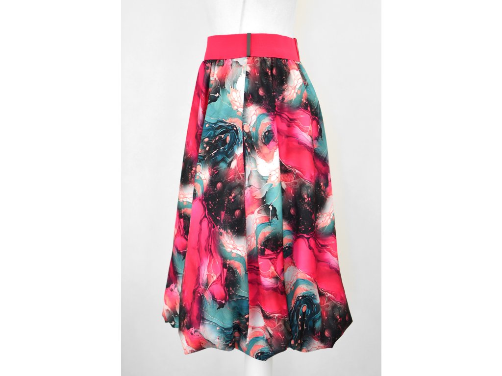 Dámská sukně s elastickou gumou do pasu, balonového a půlkolového střihu zároveň. Podšitá polyesterovou látkou, která je vhodná jak na punčochy, tak holé nohy a sukně se dá nosit celoročně. Skryté kapsy v bocích nesmí chybět.