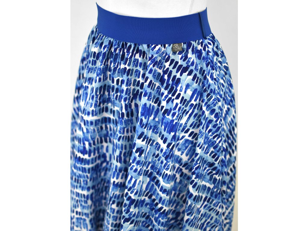 Šitá v jedné délce. Délka sukně včetně gumy je v rozmezí 65 - 67 cm.