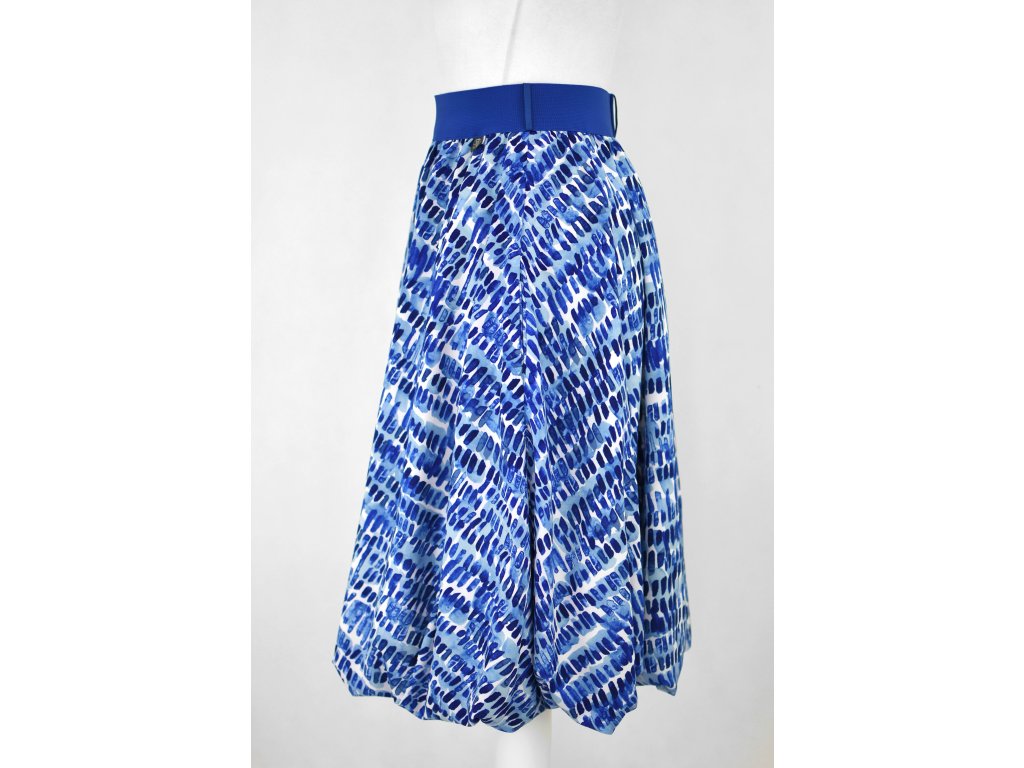 Dámská sukně s elastickou gumou do pasu, balonového a půlkolového střihu zároveň. Podšitá polyesterovou látkou, která je vhodná jak na punčochy, tak holé nohy a sukně se dá nosit celoročně. Skryté kapsy v bocích nesmí chybět.