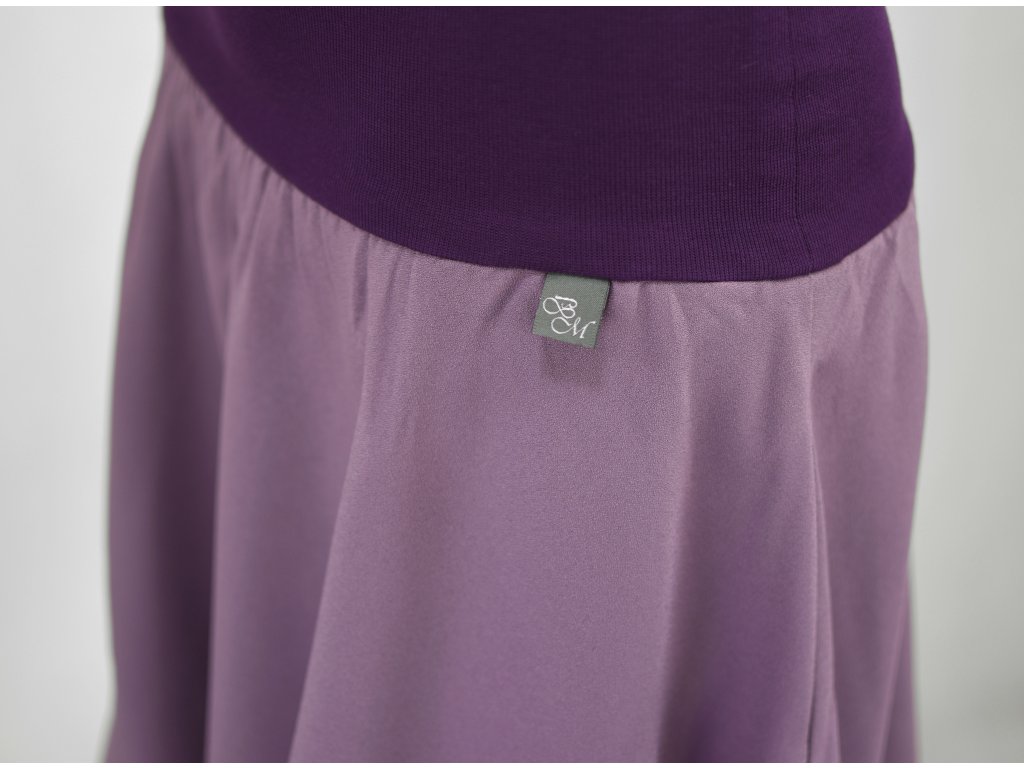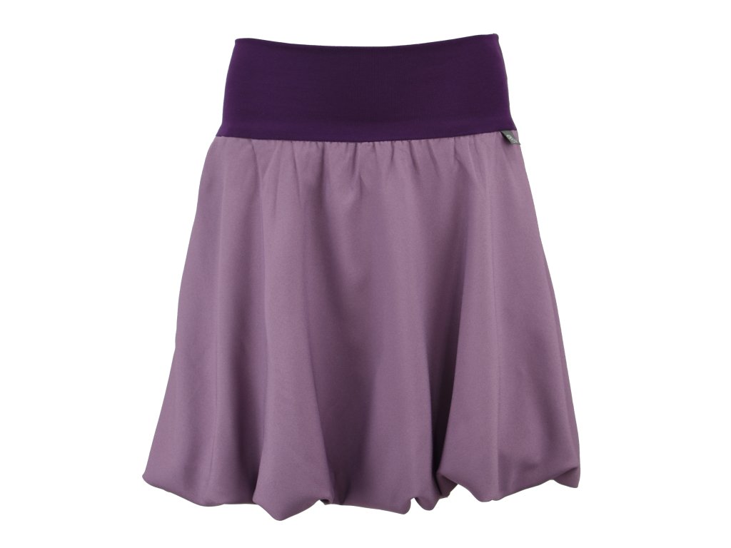 Dámská sukně balonového a půlkolového střihu zároveň. V pase s dvojitým elastickým okrajem vhodným pro většinu velikostí. Podšitá polyesterovou látkou, která je vhodná jak na punčochy, tak holé nohy a sukně se dá nosit celoročně. Z rubu elastického pasu je nechán otvor na případné vložení gumy na zpevnění či stažení pasu. Skryté kapsy v bocích nesmí chybět.
