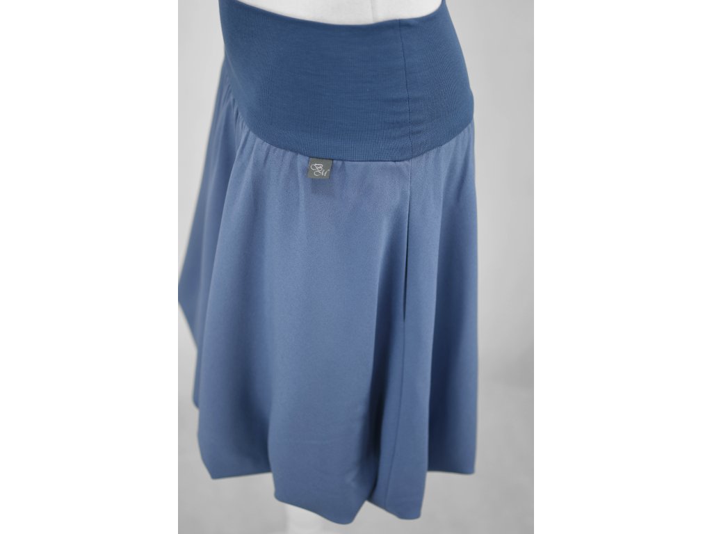 Půlkolová sukně - balonová - náplet - šedomodrá