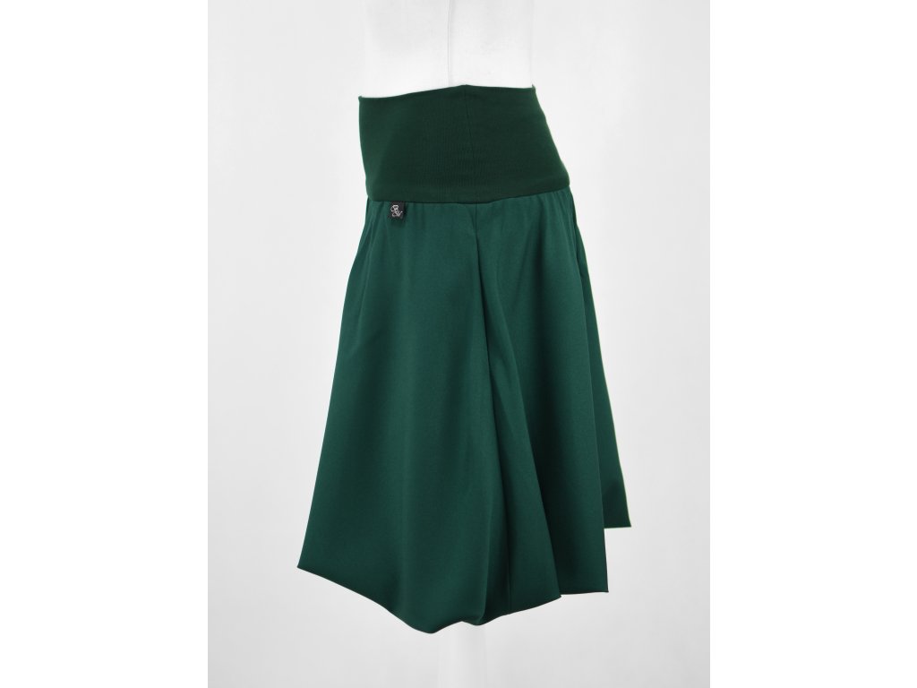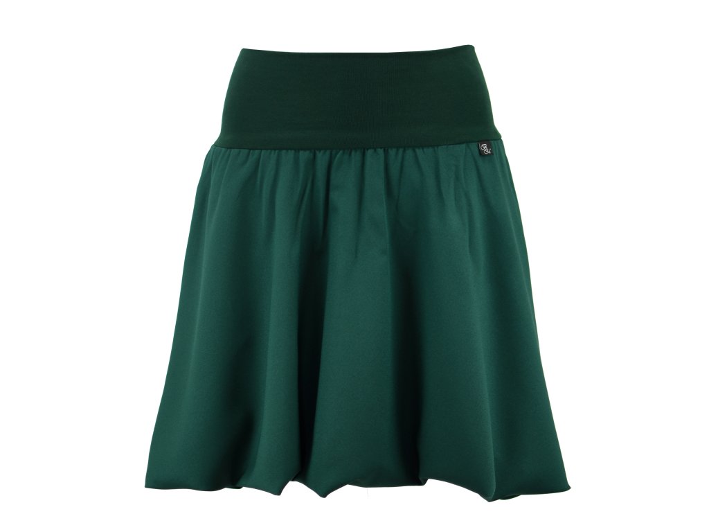 Dámská sukně balonového a půlkolového střihu zároveň. V pase s dvojitým elastickým okrajem vhodným pro většinu velikostí. Podšitá polyesterovou látkou, která je vhodná jak na punčochy, tak holé nohy a sukně se dá nosit celoročně. Z rubu elastického pasu je nechán otvor na případné vložení gumy na zpevnění či stažení pasu. Skryté kapsy v bocích nesmí chybět.