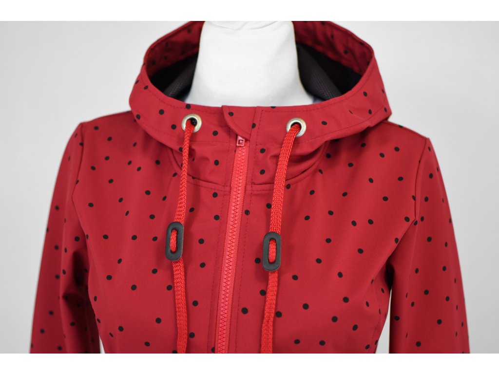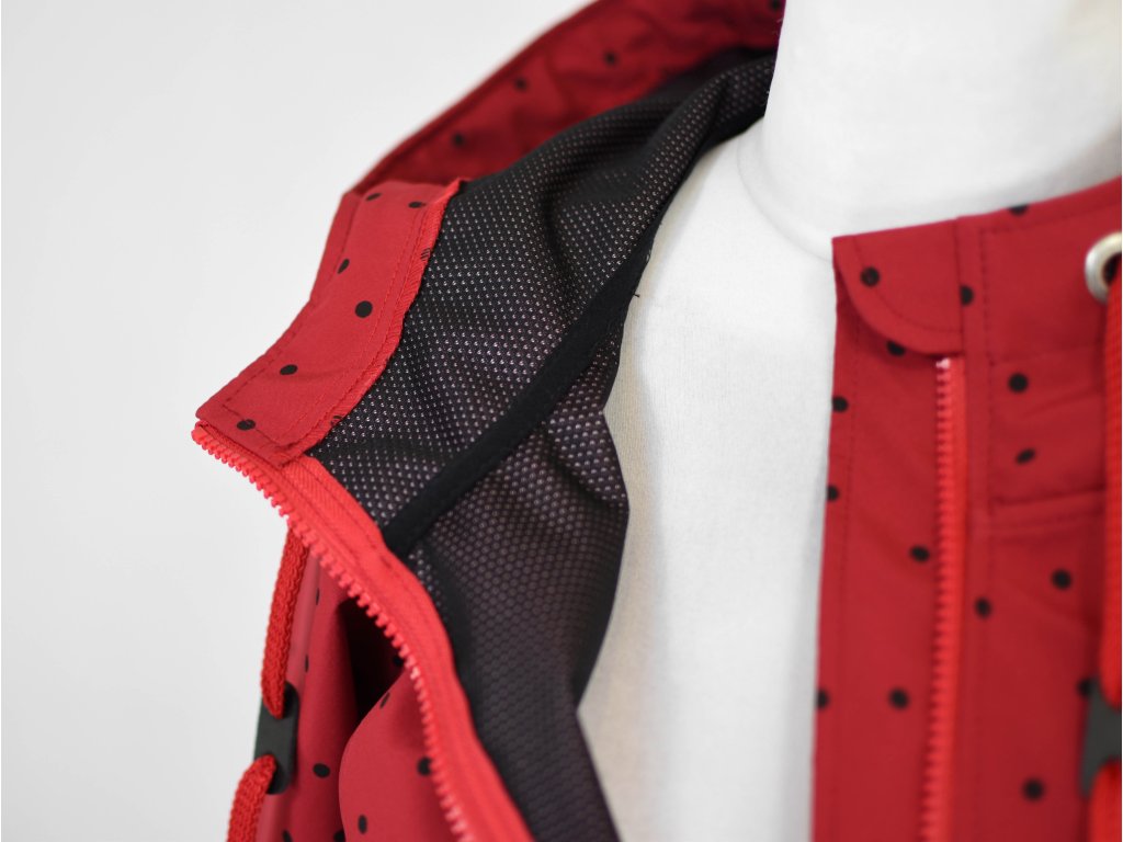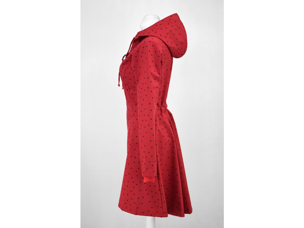 Kabát pršiplášť - půlkolový - tmavě červený s puntínky