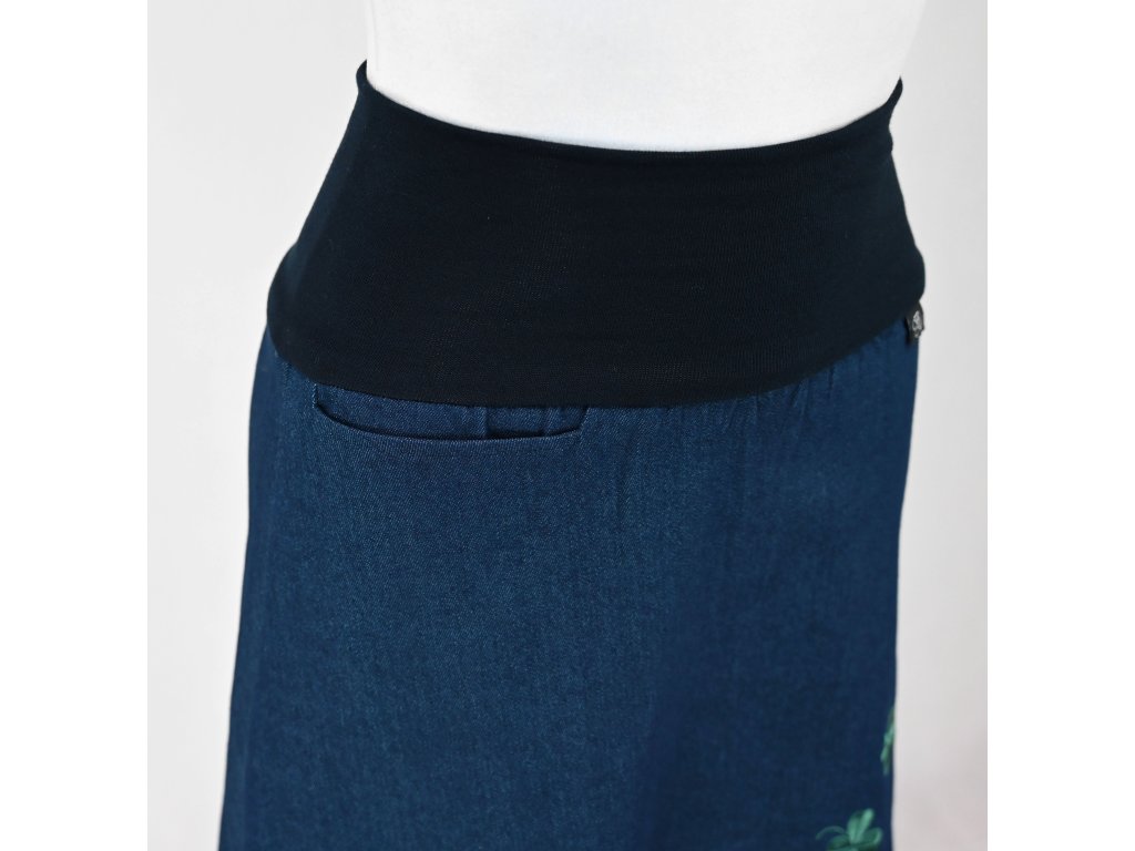 Áčková sukně s kapsou - čtyřlístky II.JAKOST