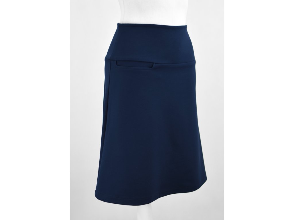 Dámská sukně áčkového střihu s kapsičkou. Zadní díl je lehce prodloužený. Vyšité logo BM v levém spodním rohu zadního dílu. Skvěle kombinovatelná jako komplet s našimi saky, ale lze ji nosit i jako volnočasovou. Nemá podšívku, dá se i tak nosit na punčochy i holé nohy.