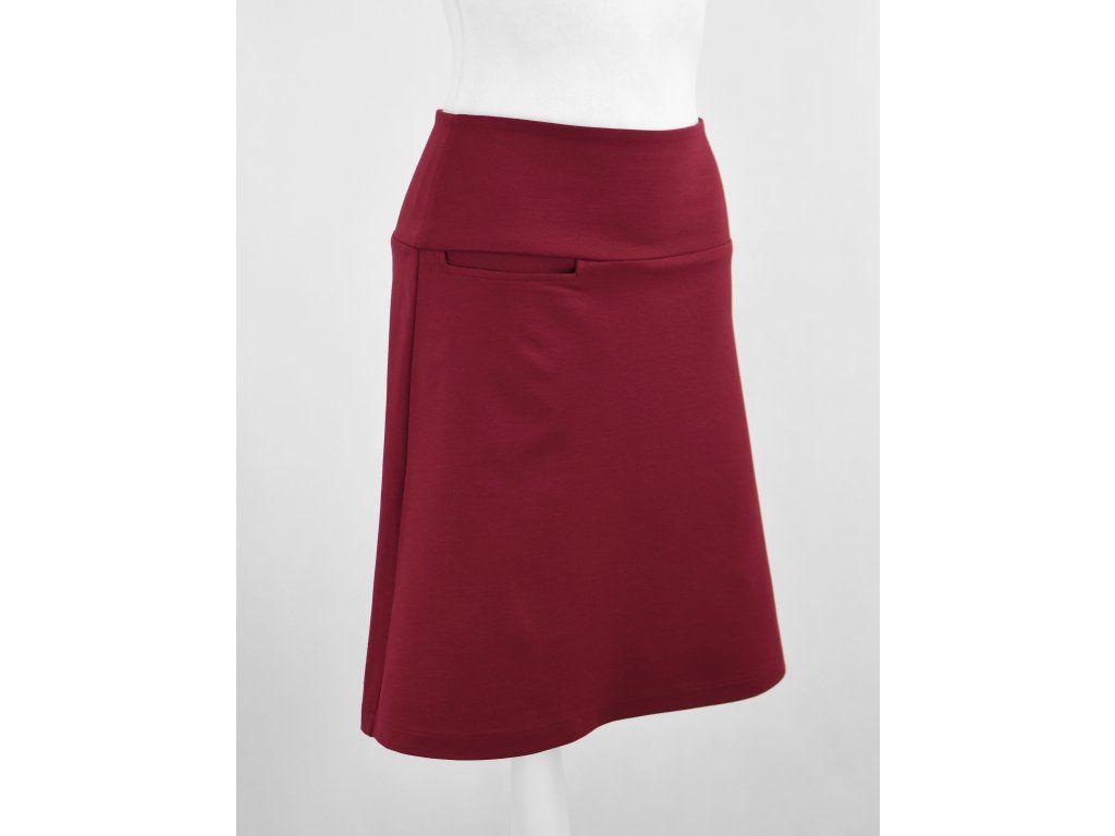 Áčková sukně s kapsou - vínová 2