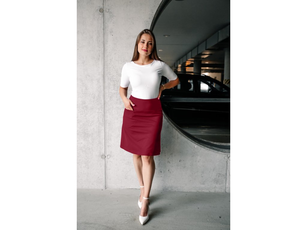 Dámská sukně áčkového střihu s kapsičkou. Zadní díl je lehce prodloužený. Vyšité logo BM v levém spodním rohu zadního dílu. Skvěle kombinovatelná jako komplet s našimi saky, ale lze ji nosit i jako volnočasovou. Nemá podšívku, dá se i tak nosit na punčochy i holé nohy.
