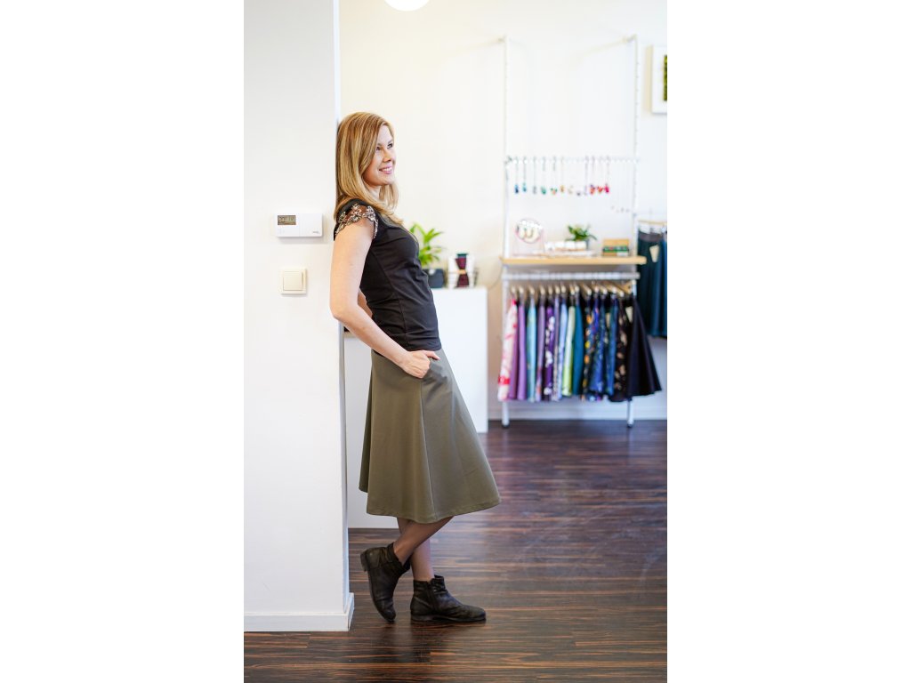 Prodloužená áčková sukně - khaki