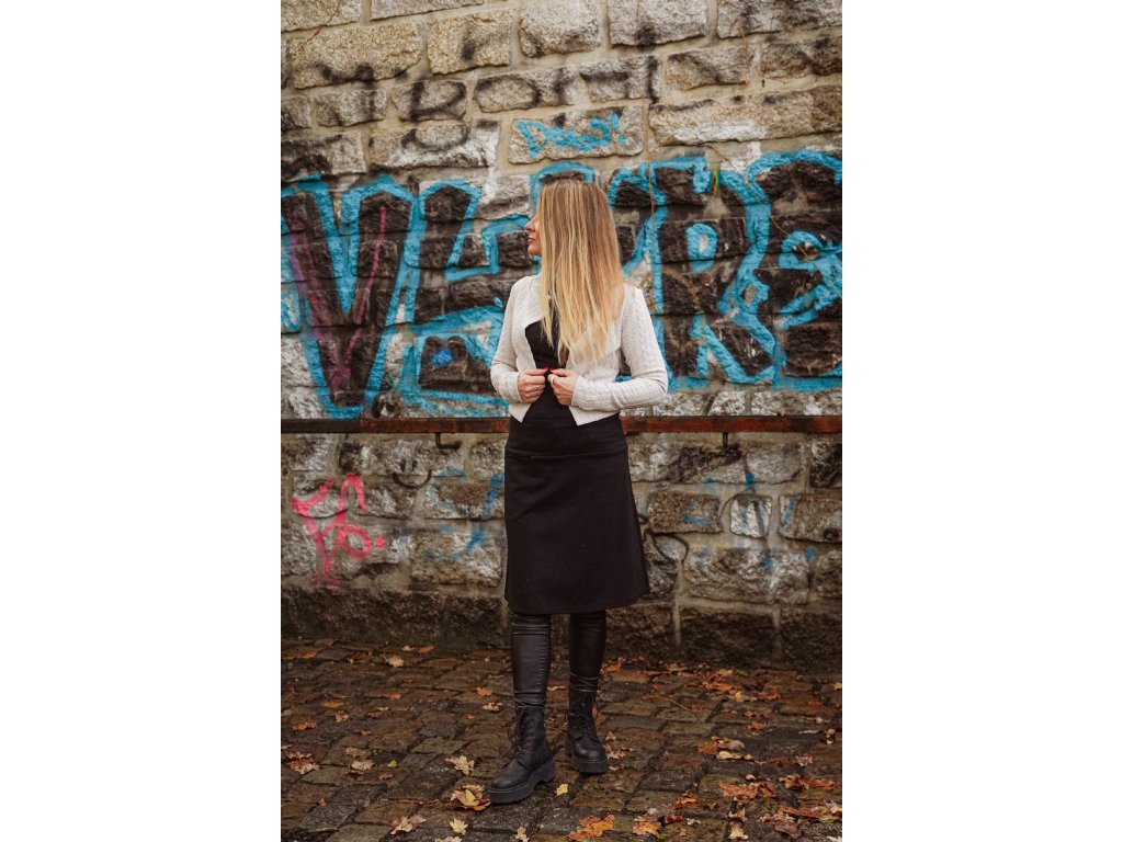 Dámská sukně áčkového střihu s kapsičkou. Zadní díl je lehce prodloužený. Vyšité logo BM v levém spodním rohu zadního dílu. Skvěle kombinovatelná jako komplet s našimi saky, ale lze ji nosit i jako volnočasovou. Nemá podšívku, dá se i tak nosit na punčochy i holé nohy.