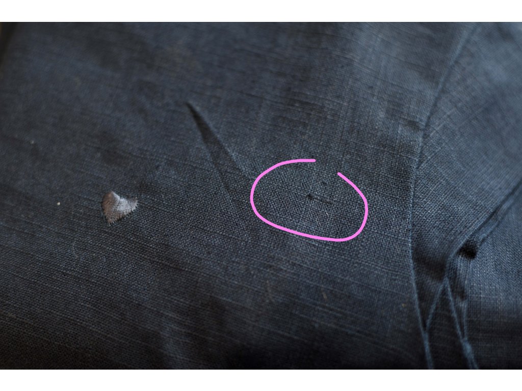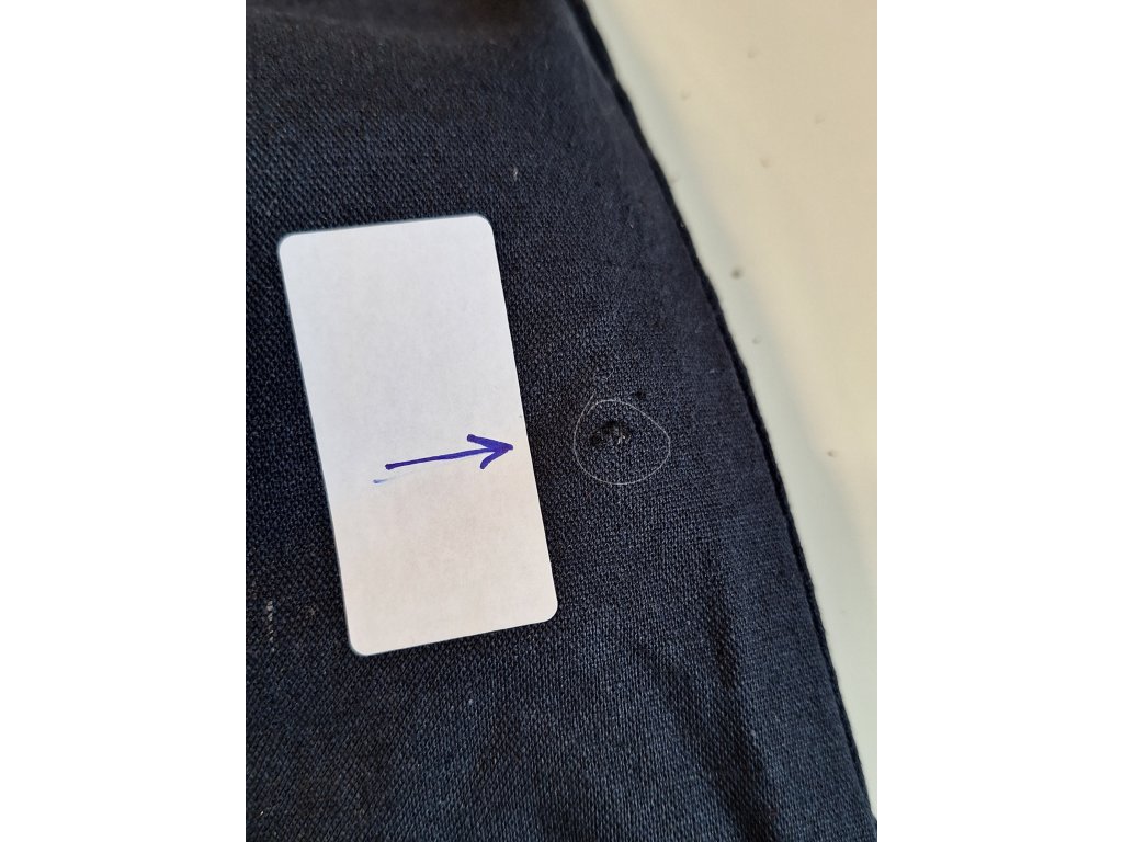 II. JAKOST - XS - KAZ V LÁTCE u výšivky srdíčka, M - NOPEK V LÁTCE, vedle zipu na předním díle