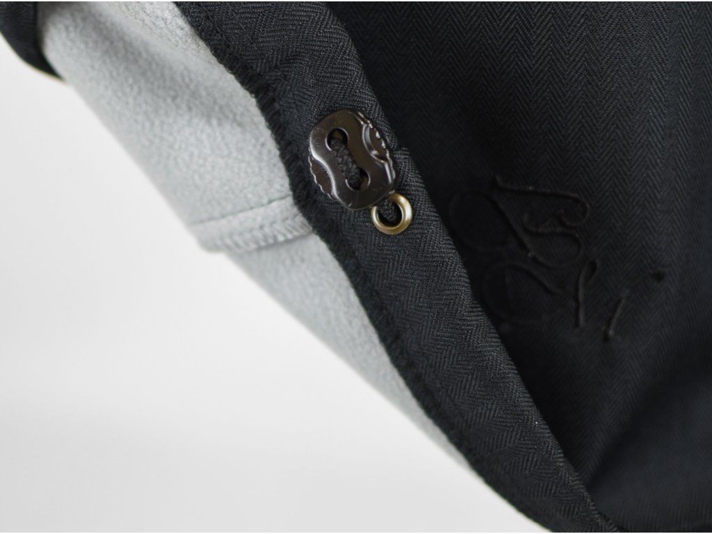 Neodmyslitelnou součástí je chránič brady u zipu. Rukávy jsou s delší švovou záložkou - dají se případně o trochu prodloužit, ale jsou dostatečně dlouhé pro většinu postav. Mají náplet všitý do kraje rukávu, aby dovnitř nefoukalo.