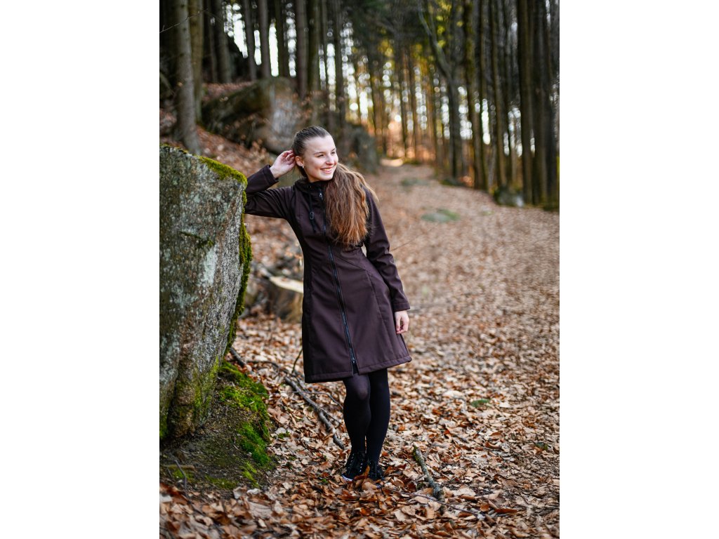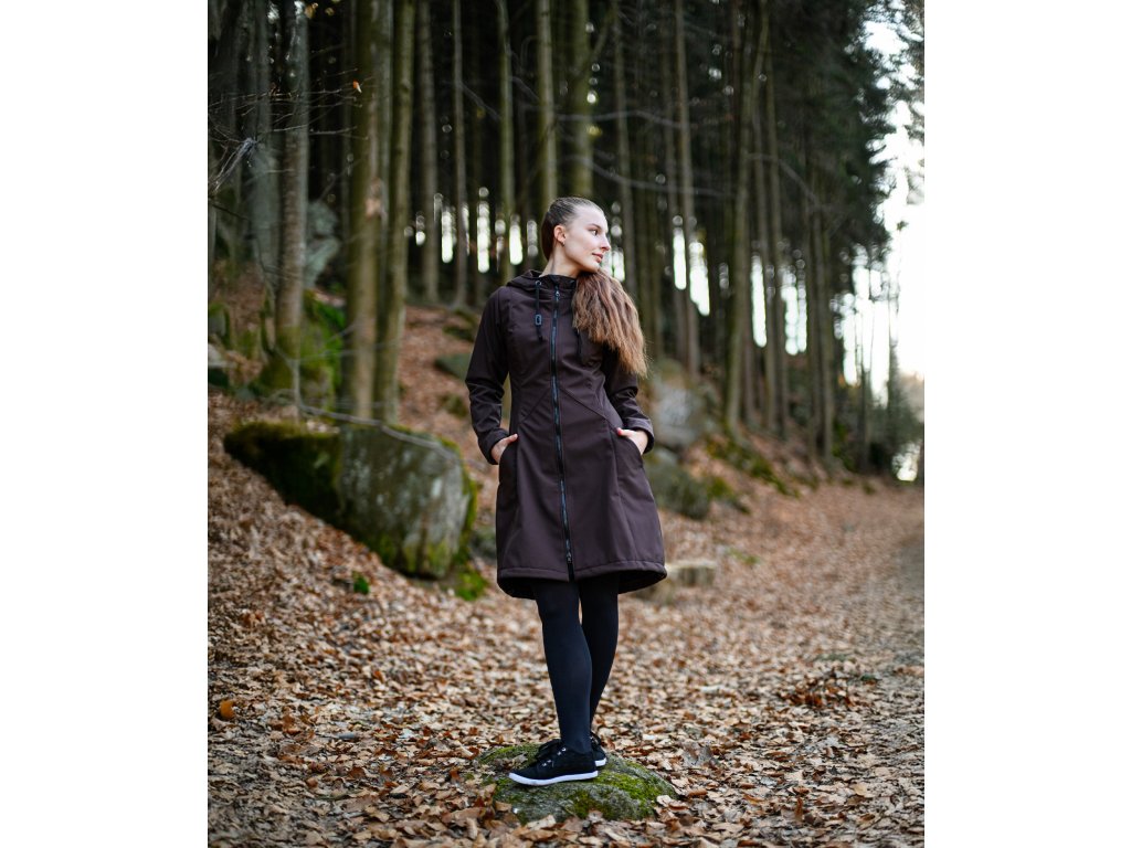 Softshellový kabát - áčkový - tmavě hnědý