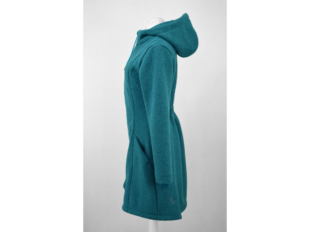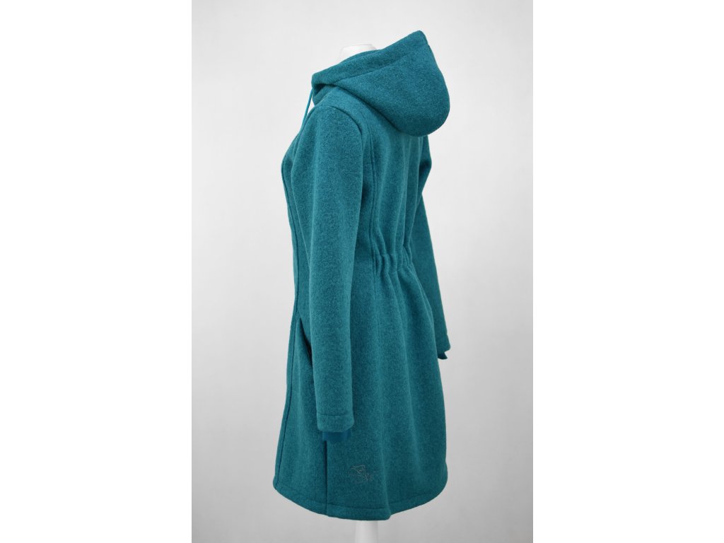 Vlněný kabát - áčkový - tmavě tyrkysový