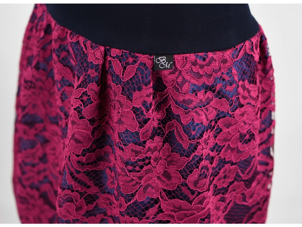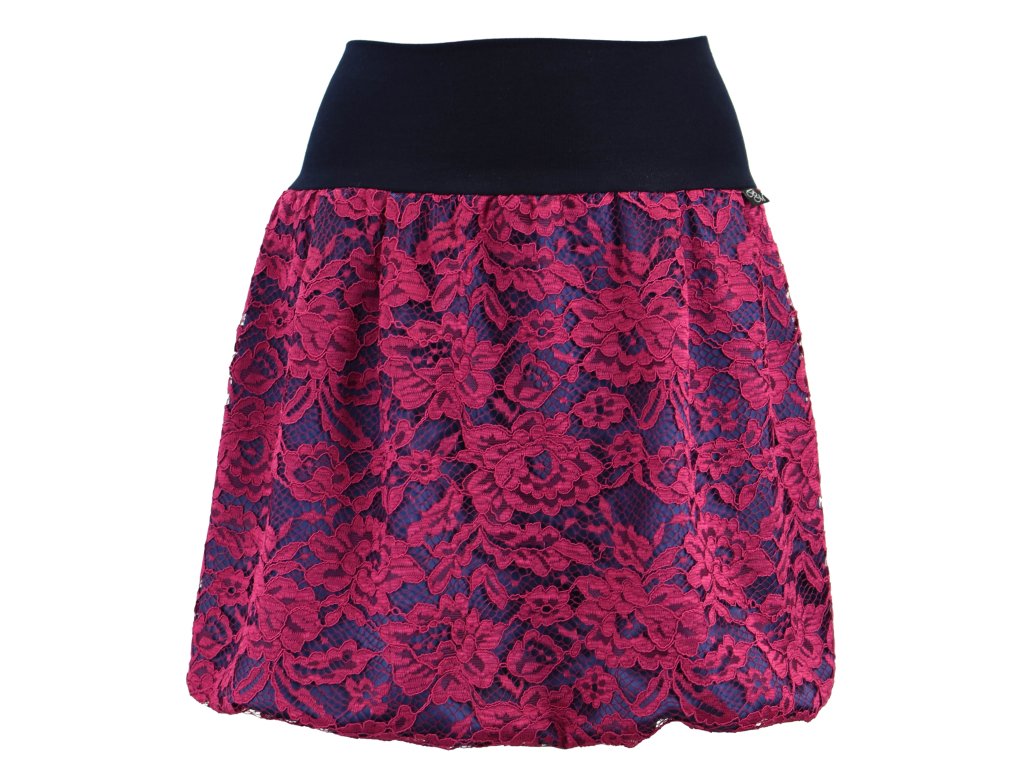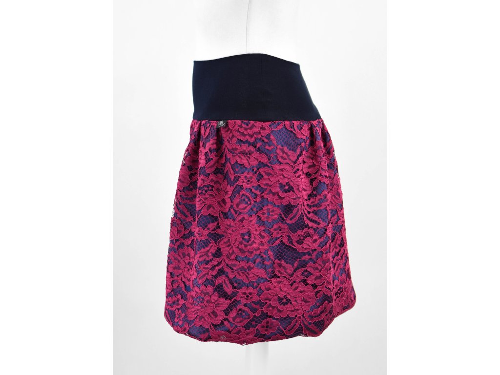 Dámská sukně balonového střihu s dvojitým elastickým pasovým okrajem vhodným pro většinu velikostí. Podšité polyesterovou látkou, která je vhodná jak na punčochy, tak holé nohy a sukně se dá nosit celoročně. Z rubu elastického pasu je nechán otvor na případné vložení gumy na zpevnění či stažení pasu (vhodné pro velikost XS).
