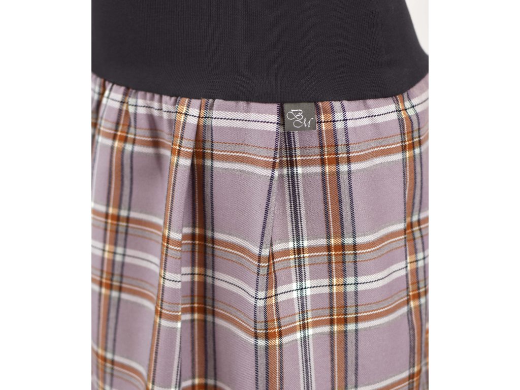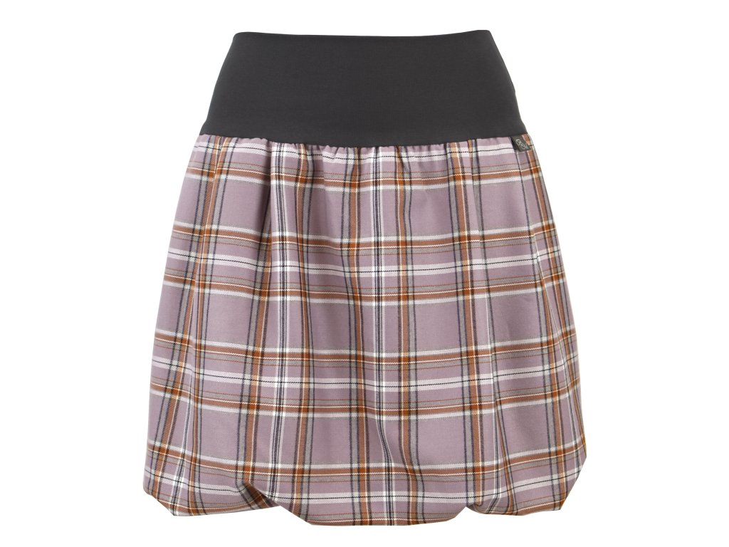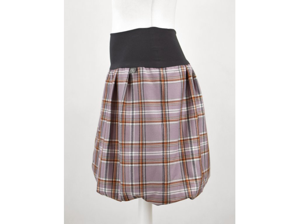 Dámská sukně balonového střihu s dvojitým elastickým pasovým okrajem vhodným pro většinu velikostí. Podšité polyesterovou látkou, která je vhodná jak na punčochy, tak holé nohy a sukně se dá nosit celoročně. Z rubu elastického pasu je nechán otvor na případné vložení gumy na zpevnění či stažení pasu – vhodné pro velikost XS.