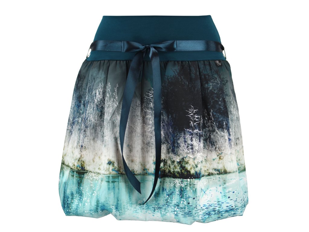 Dámská sukně balonového střihu s dvojitým elastickým pasovým okrajem vhodným pro většinu velikostí. Podšité polyesterovou látkou, která je vhodná jak na punčochy, tak holé nohy a sukně se dá nosit celoročně. Z rubu elastického pasu je nechán otvor na případné vložení gumy na zpevnění či stažení pasu – vhodné pro velikost XS.