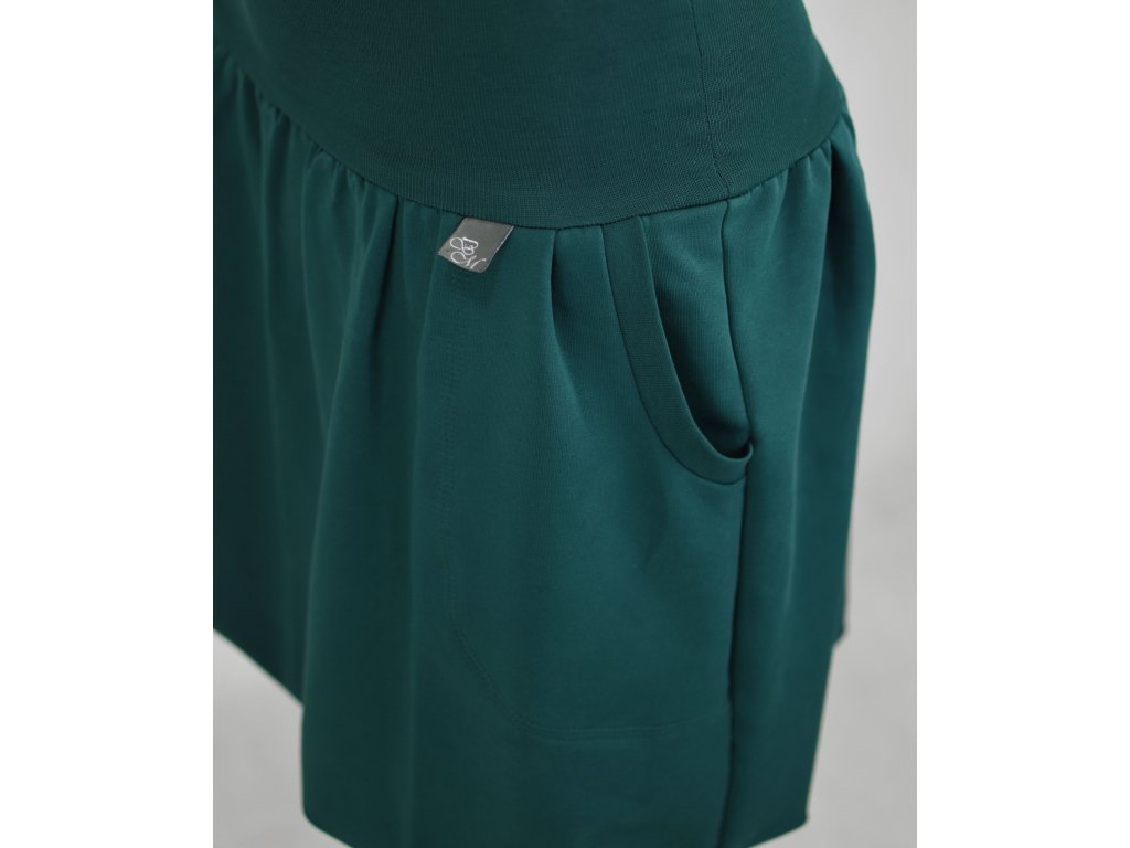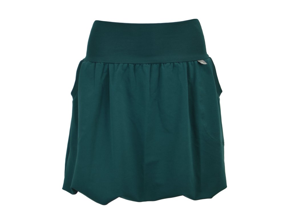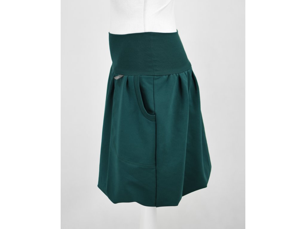 Dámská sukně balonového střihu s dvojitým elastickým pasovým okrajem vhodným pro většinu velikostí. Podšité polyesterovou látkou, která je vhodná jak na punčochy, tak holé nohy a sukně se dá nosit celoročně. Z rubu elastického pasu je nechán otvor na případné vložení gumy na zpevnění či stažení pasu – vhodné pro velikost XS.