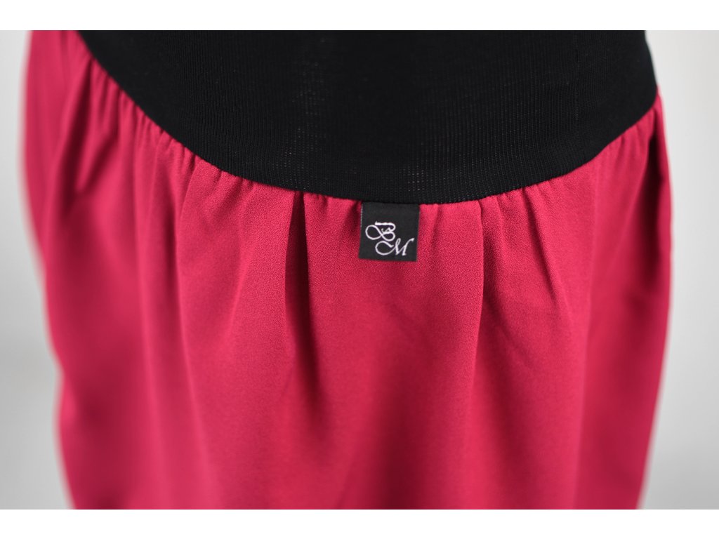 Dámská sukně balonového střihu s dvojitým elastickým pasovým okrajem vhodným pro většinu velikostí. Podšité polyesterovou látkou, která je vhodná jak na punčochy, tak holé nohy a sukně se dá nosit celoročně. Z rubu elastického pasu je nechán otvor na případné vložení gumy na zpevnění či stažení pasu – vhodné pro velikost XS.