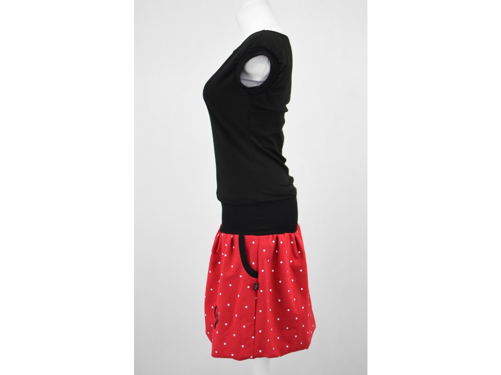 Dámská šatovka přestřižená v bocích ve variantě s nápletem. Sukně je vypodšívkovaná s kapsami v bocích, průramky lemované úpletem. Dá se nosit samotná bez rukávů, anebo s tričkem.. :)