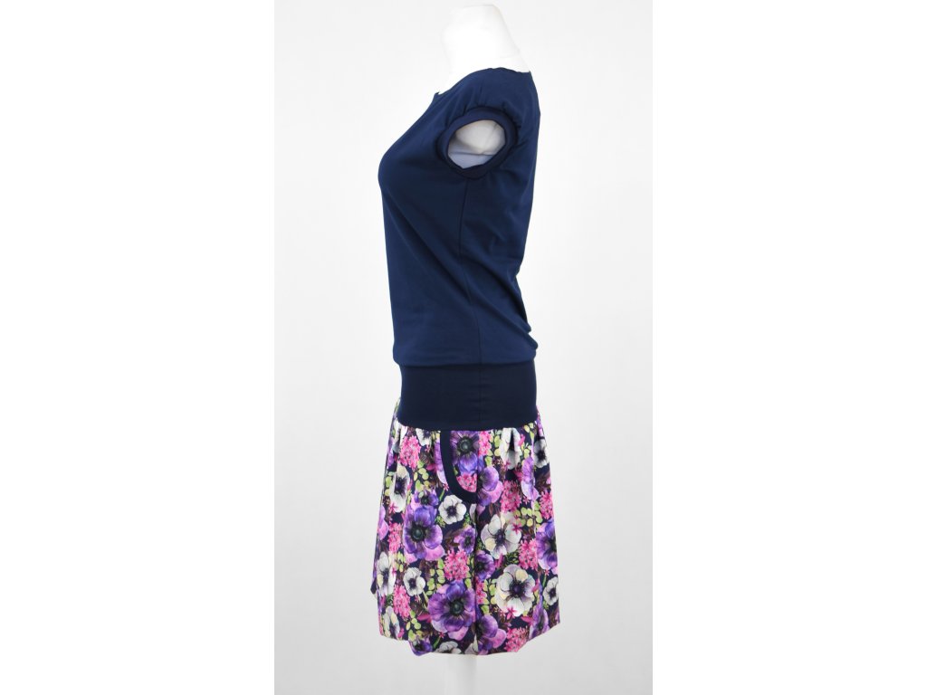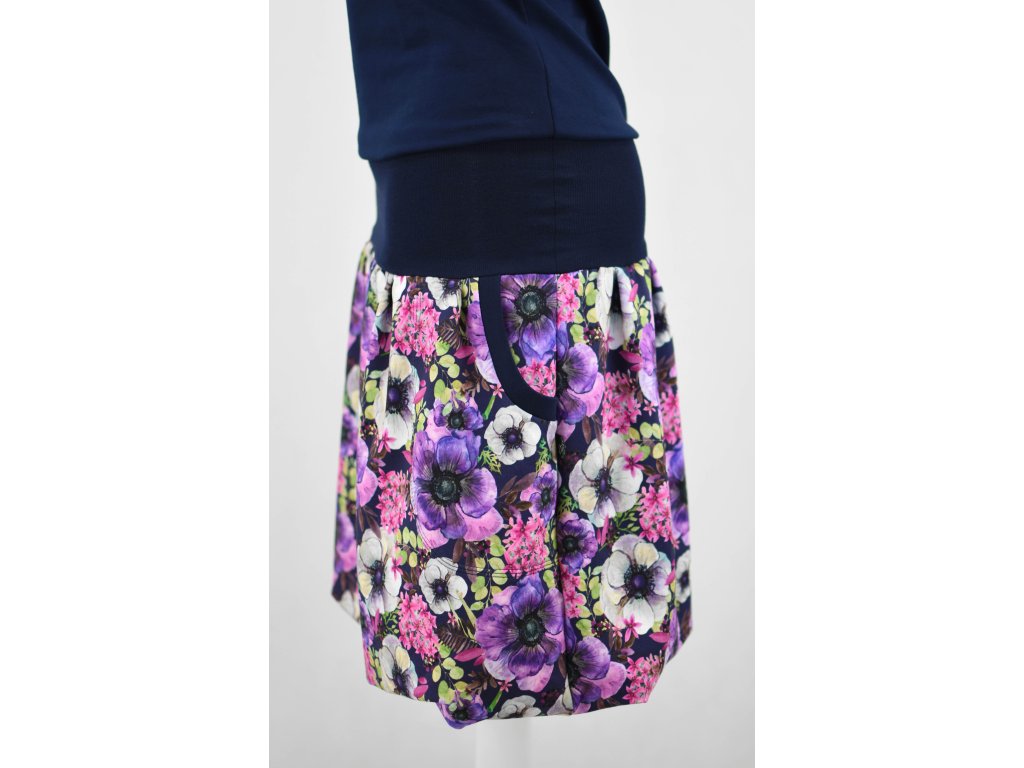 Dámská šatovka přestřižená v bocích ve variantě s nápletem, stažené gumičkou. Sukně je vypodšívkovaná s kapsami v bocích, průramky lemované úpletem. Dá se nosit samotná bez rukávů, anebo s tričkem.. :)