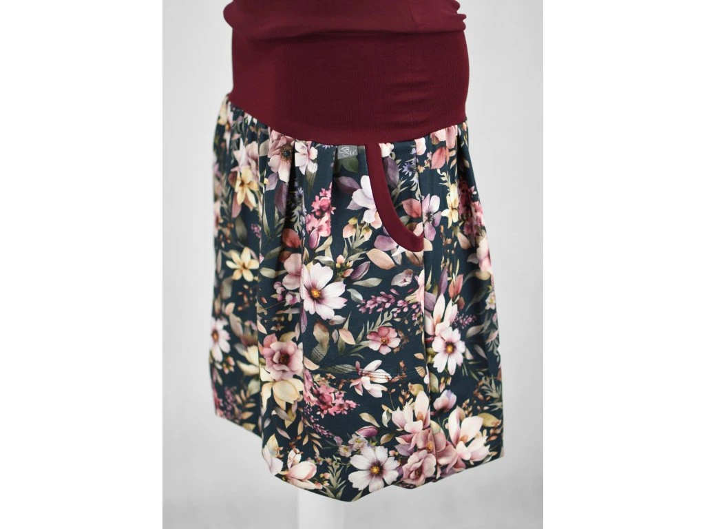 Balonová šatovka - vínová s květy