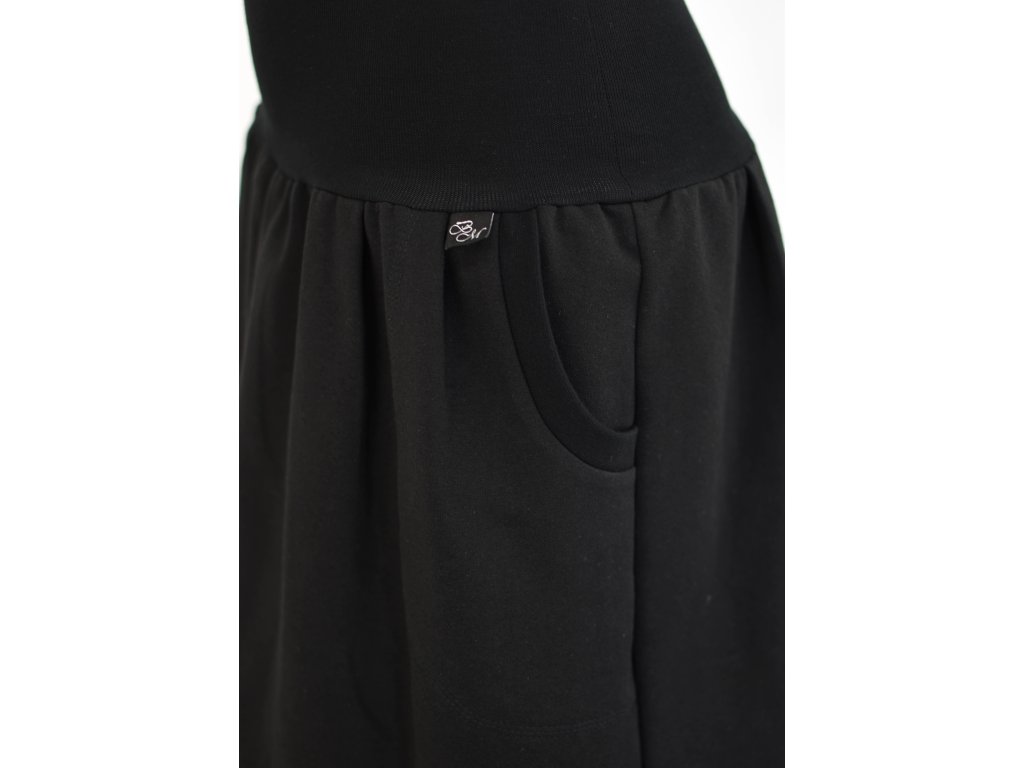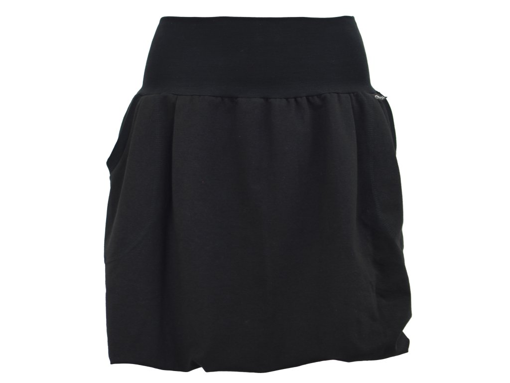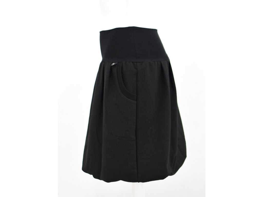 Dámská sukně balonového střihu s dvojitým elastickým pasovým okrajem vhodným pro většinu velikostí. Podšité polyesterovou látkou, která je vhodná jak na punčochy, tak holé nohy a sukně se dá nosit celoročně. Z rubu elastického pasu je nechán otvor na případné vložení gumy na zpevnění či stažení pasu – vhodné pro velikost XS.