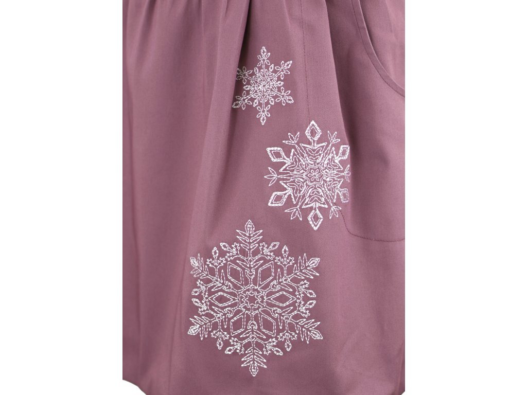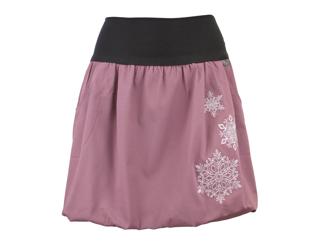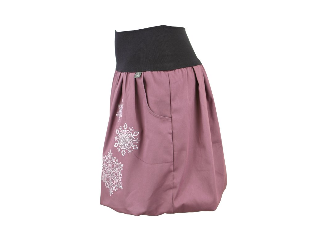 Dámská sukně balonového střihu s dvojitým elastickým pasovým okrajem vhodným pro většinu velikostí. Podšité polyesterovou látkou, která je vhodná jak na punčochy, tak holé nohy a sukně se dá nosit celoročně. Z rubu elastického pasu je nechán otvor na případné vložení gumy na zpevnění či stažení pasu – vhodné pro velikost XS.