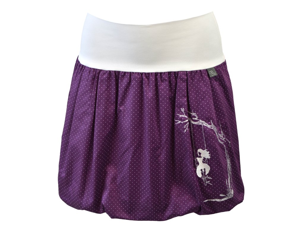 Dámská sukně balonového střihu s dvojitým elastickým pasovým okrajem vhodným pro většinu velikostí. Podšité polyesterovou látkou, která je vhodná jak na punčochy, tak na holé nohy a sukně se dá nosit celoročně. Z rubu elastického pasu je nechán otvor na případné vložení gumy na zpevnění či stažení pasu (vhodné pro velikost XS).