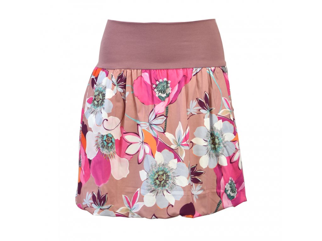Dámská sukně balonového střihu s dvojitým elastickým pasovým okrajem vhodným pro většinu velikostí. Podšité polyesterovou látkou, která je vhodná jak na punčochy, tak na holé nohy a sukně se dá nosit celoročně. Z rubu elastického pasu je nechán otvor na případné vložení gumy na zpevnění či stažení pasu (vhodné pro velikost XS).