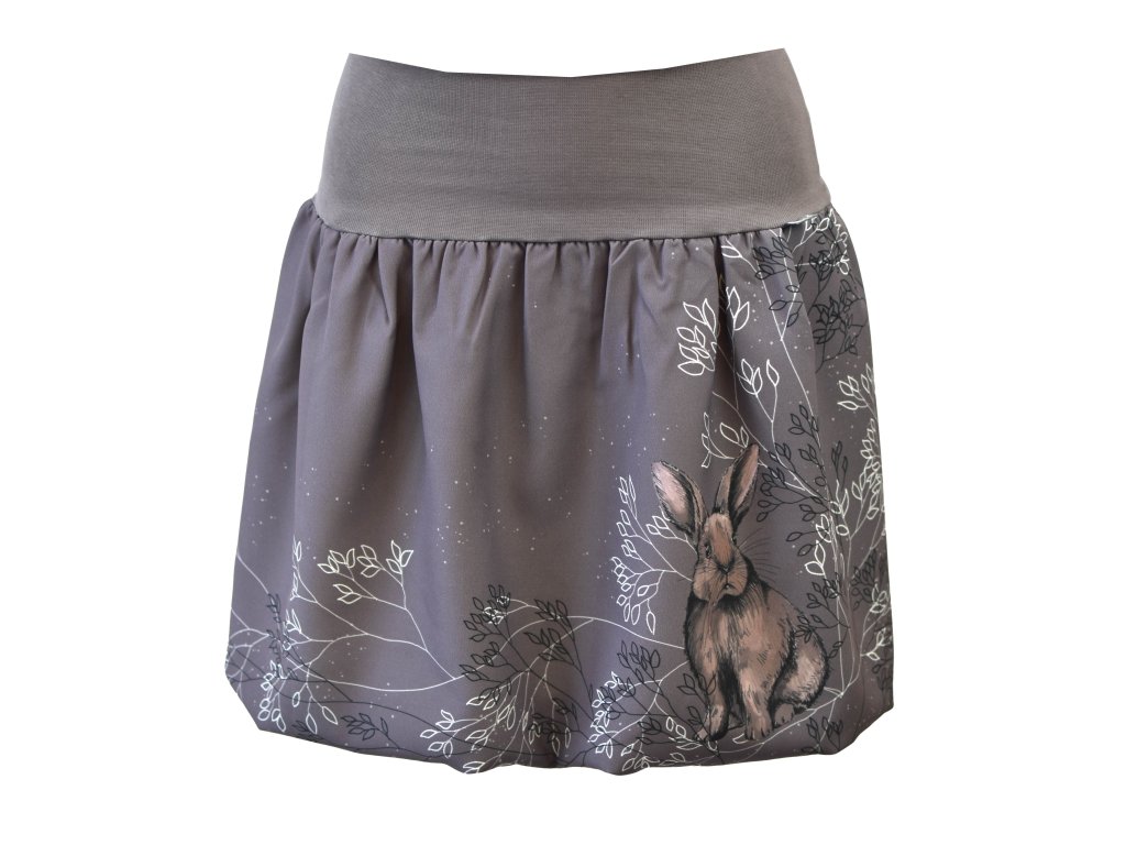 Dámská sukně balonového střihu s dvojitým elastickým pasovým okrajem vhodným pro většinu velikostí. Podšité polyesterovou látkou, která je vhodná jak na punčochy, tak holé nohy a sukně se dá nosit celoročně. Z rubu elastického pasu je nechán otvor na případné vložení gumy na zpevnění či stažení pasu – vhodné pro velikost XS.