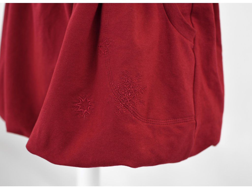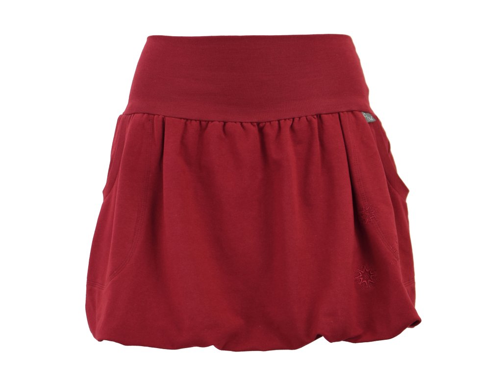 Dámská sukně balonového střihu s dvojitým elastickým pasovým okrajem vhodným pro většinu velikostí. Podšité polyesterovou látkou, která je vhodná jak na punčochy, tak holé nohy a sukně se dá nosit celoročně. Z rubu elastického pasu je nechán otvor na případné vložení gumy na zpevnění či stažení pasu – vhodné pro velikost XS.