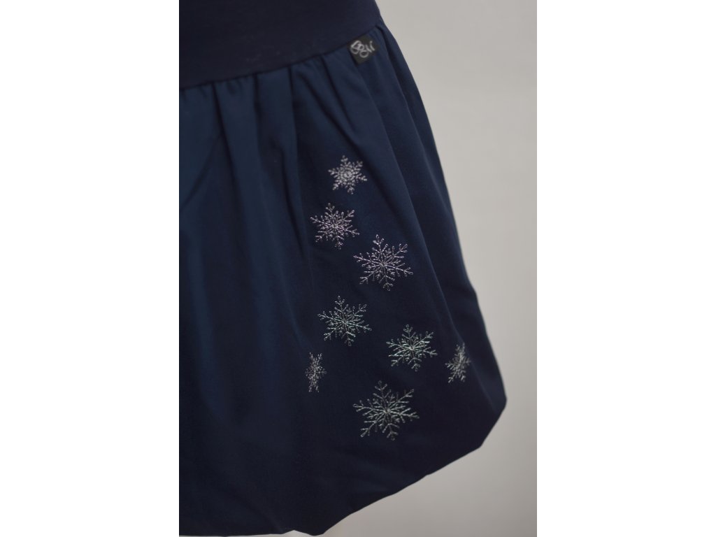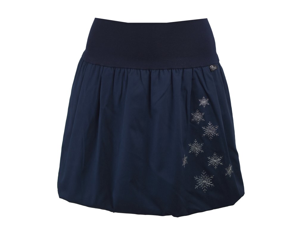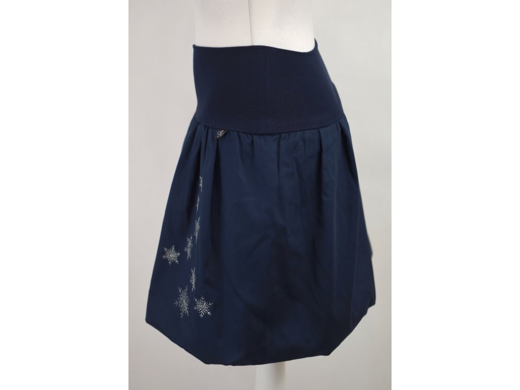 Dámská sukně balonového střihu s dvojitým elastickým pasovým okrajem vhodným pro většinu velikostí. Podšité polyesterovou látkou, která je vhodná jak na punčochy, tak holé nohy a sukně se dá nosit celoročně. Z rubu elastického pasu je nechán otvor na případné vložení gumy na zpevnění či stažení pasu – vhodné pro velikost XS.