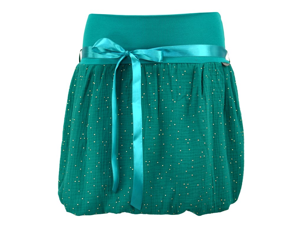 Dámská sukně balonového střihu s dvojitým elastickým pasovým okrajem vhodným pro většinu velikostí. Podšité polyesterovou látkou, která je vhodná jak na punčochy, tak holé nohy a sukně se dá nosit celoročně. Z rubu elastického pasu je nechán otvor na případné vložení gumy na zpevnění či stažení pasu – vhodné pro velikost XS. Sukně má 2 očka na stuhu, dají se případně lehce odstranit.