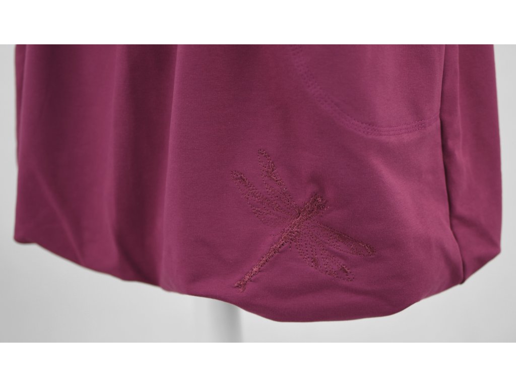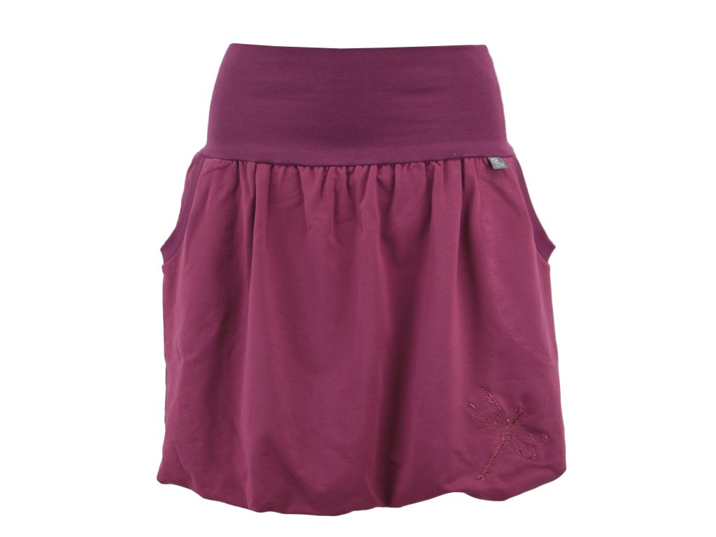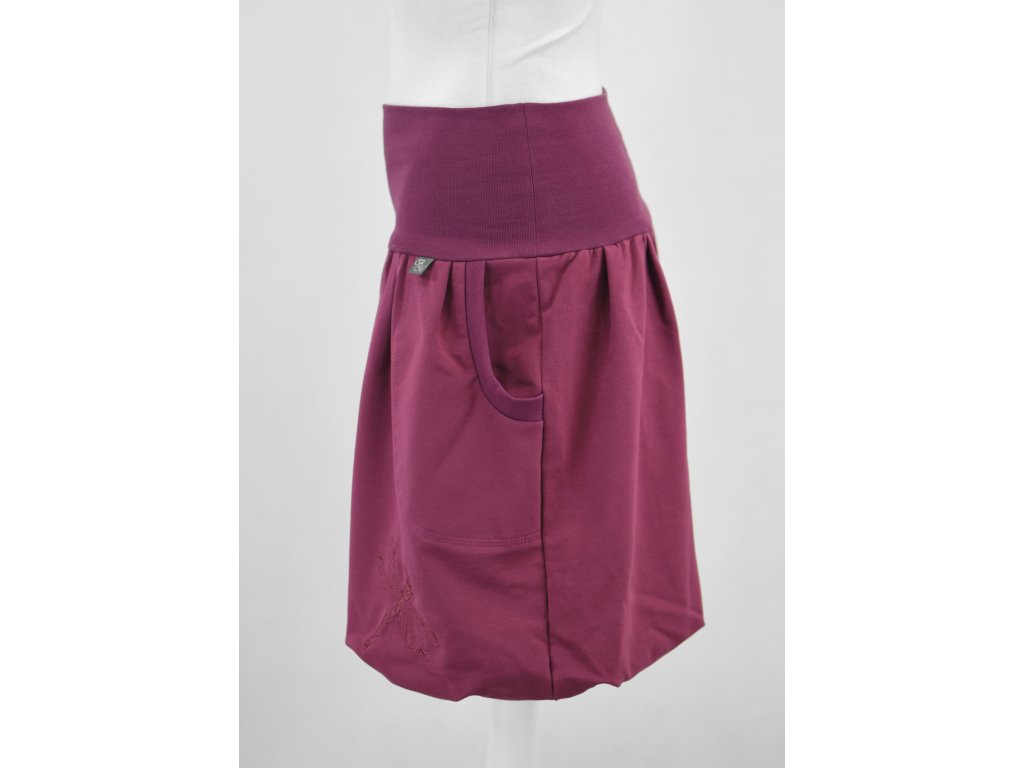 Dámská sukně balonového střihu s dvojitým elastickým pasovým okrajem vhodným pro většinu velikostí. Podšité polyesterovou látkou, která je vhodná jak na punčochy, tak holé nohy a sukně se dá nosit celoročně. Z rubu elastického pasu je nechán otvor na případné vložení gumy na zpevnění či stažení pasu – vhodné pro velikost XS.