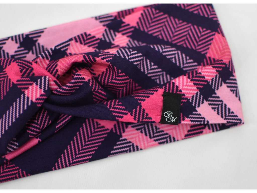 Čelenka s překřížením - falešným uzlíkem. Šitá v chráněné dílně D.R.A.K. z.s. Liberec. Barevně ladí k našim půlkolovým šatům, jsou ze stejné látky.