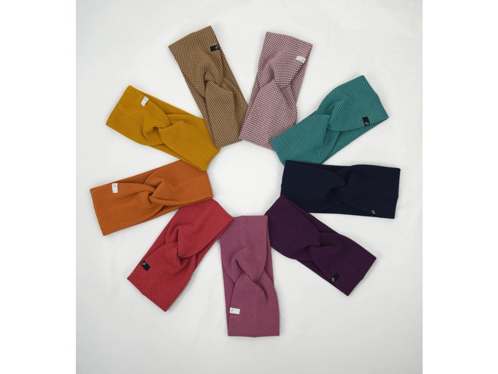 Čelenka s překřížením - falešným uzlíkem. Šitá v chráněné dílně D.R.A.K. z.s. Liberec. Barevně ladí k našim mikinám do pasu s mašličkou. :)