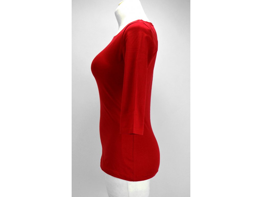 Dámské tričko z příjemného elastického úpletu. V pase projmuté, lodičkový výstřih.