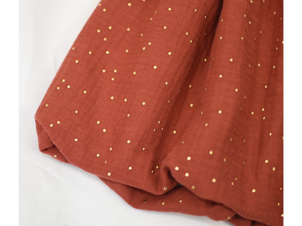 - Materiál: 100 % bavlna - mušelín a zlaté tečky, lehká vzdušná látka, strukturovaná