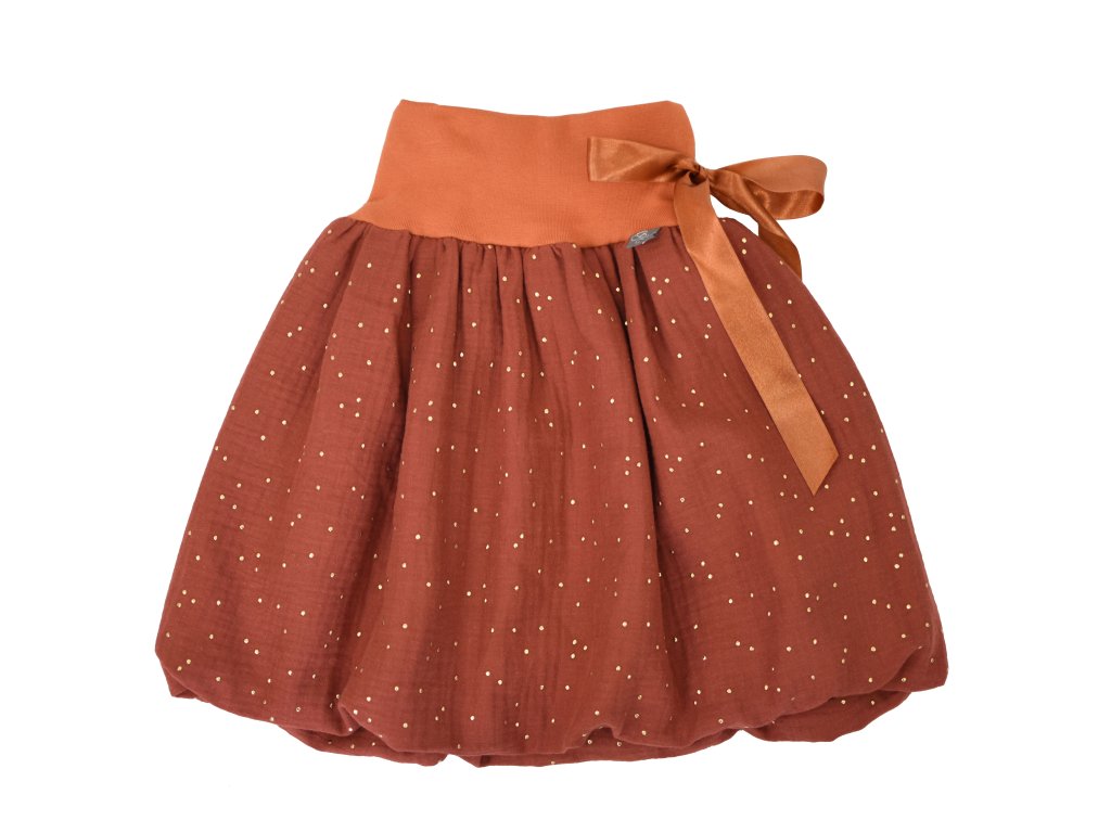 Dětská sukně balonového střihu s dvojitým elastickým pasovým okrajem. Podšité polyesterovou látkou, která je vhodná na punčošky i holé nohy. V pase je nechán otvor a jím protažená stuha, která pas stáhne a zároveň je zdobným prvkem… : )