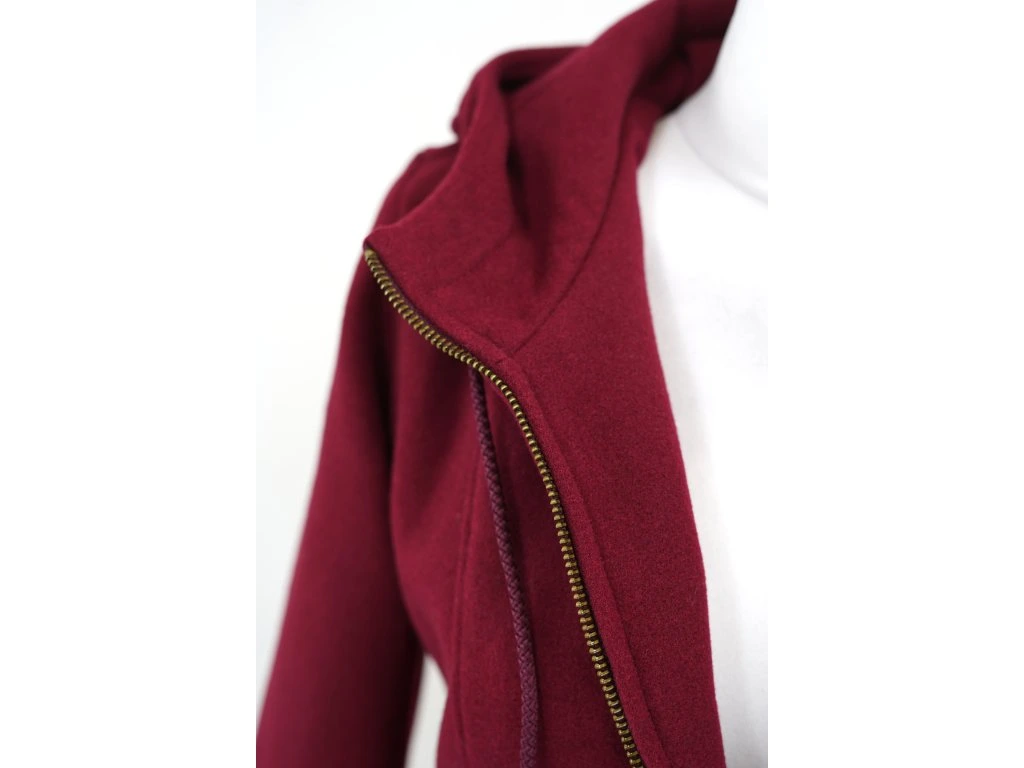 Flaušový kabát - áčkový - bordó