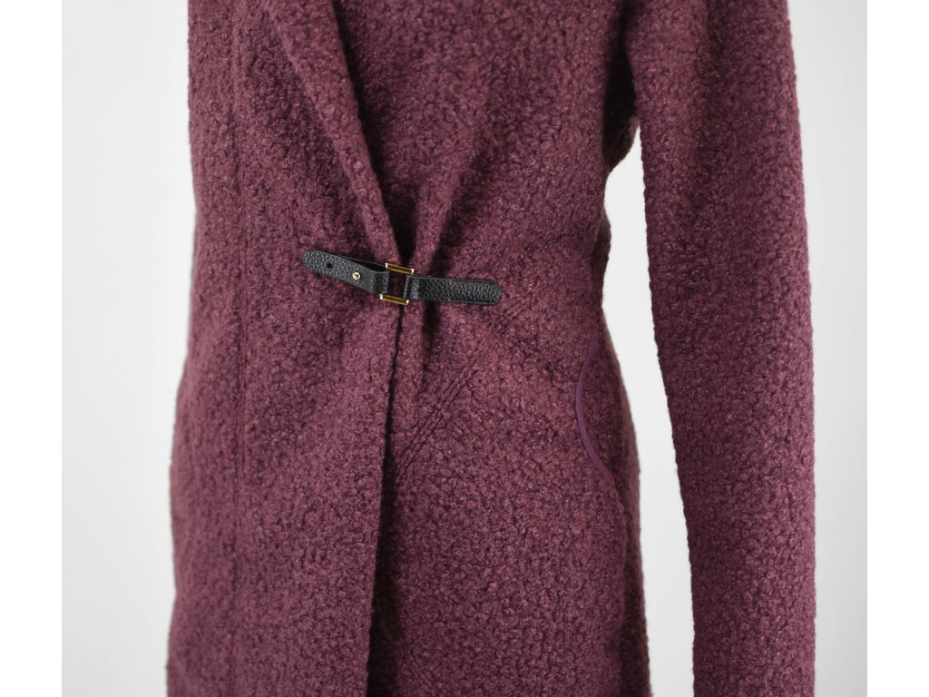 Dámský kabátek rovnějšího střihu se zapínám v pase na levé straně. Zapínání má 2 dírky. Přední díl má dvojité klopy, které postupně přechází do kapuce. Můžete jej nosit více uzavřený, anebo otevřený. Není vypodšívkovaný. Samozřejmostí jsou kapsy v bocích, olemované úpletem. Je myšlený jako slabší verze kabátku nebo jako spodní vrstva v mrazech.