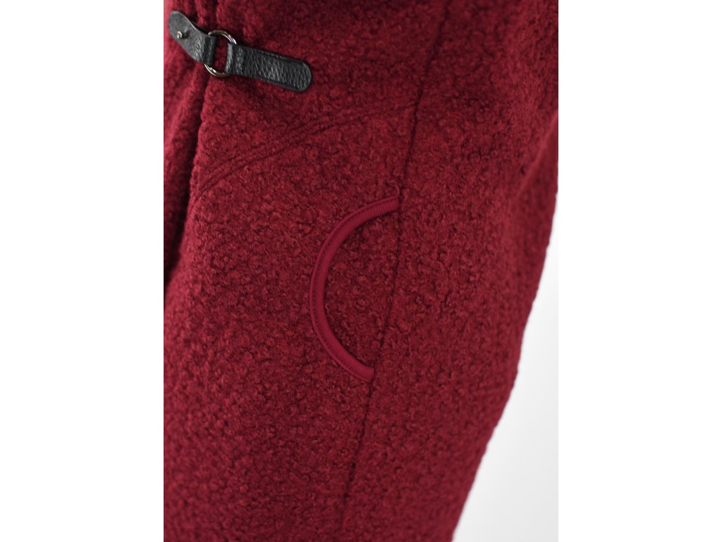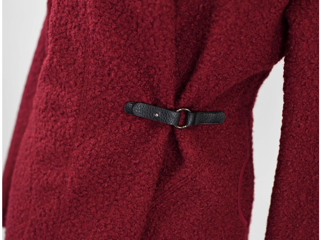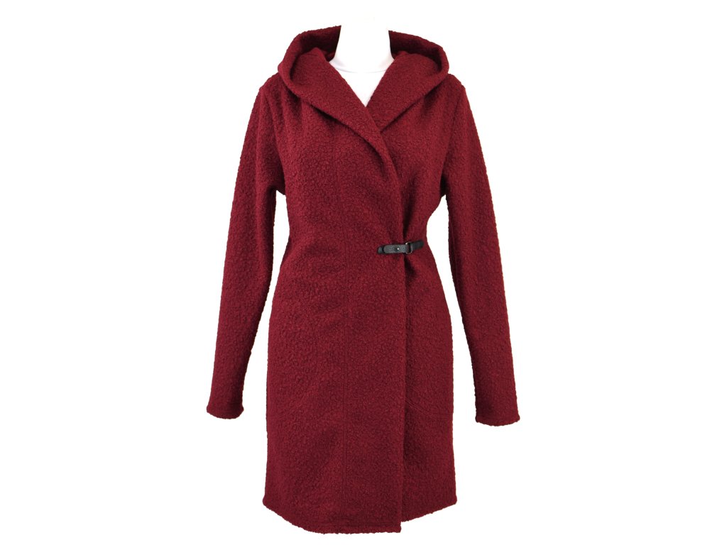 Dámský kabátek rovnějšího střihu se zapínám v pase na levé straně. Zapínání má 2 dírky. Přední díl má dvojité klopy, které postupně přechází do kapuce. Můžete jej nosit více uzavřený, anebo otevřený. Není vypodšívkovaný. Samozřejmostí jsou kapsy v bocích, olemované úpletem. Je myšlený jako slabší verze kabátku nebo jako spodní vrstva v mrazech.  Varianta 2 - rozdílná spona.