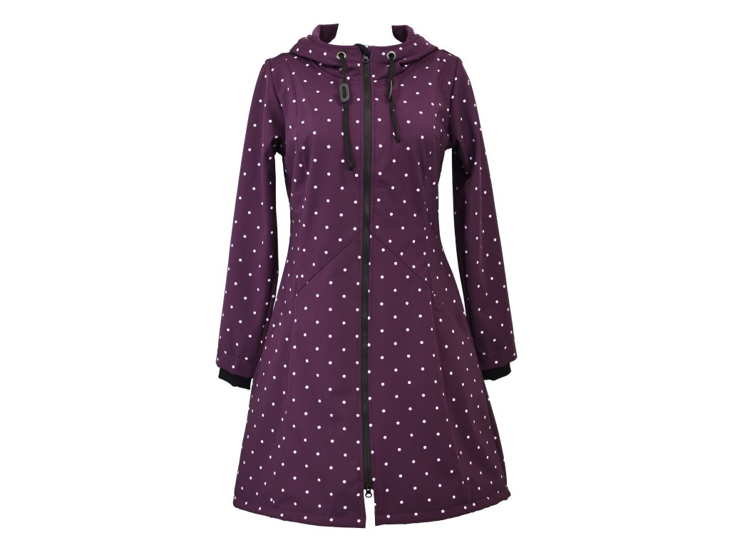 Softshellový kabát - áčkový - tm. fialový s puntíky