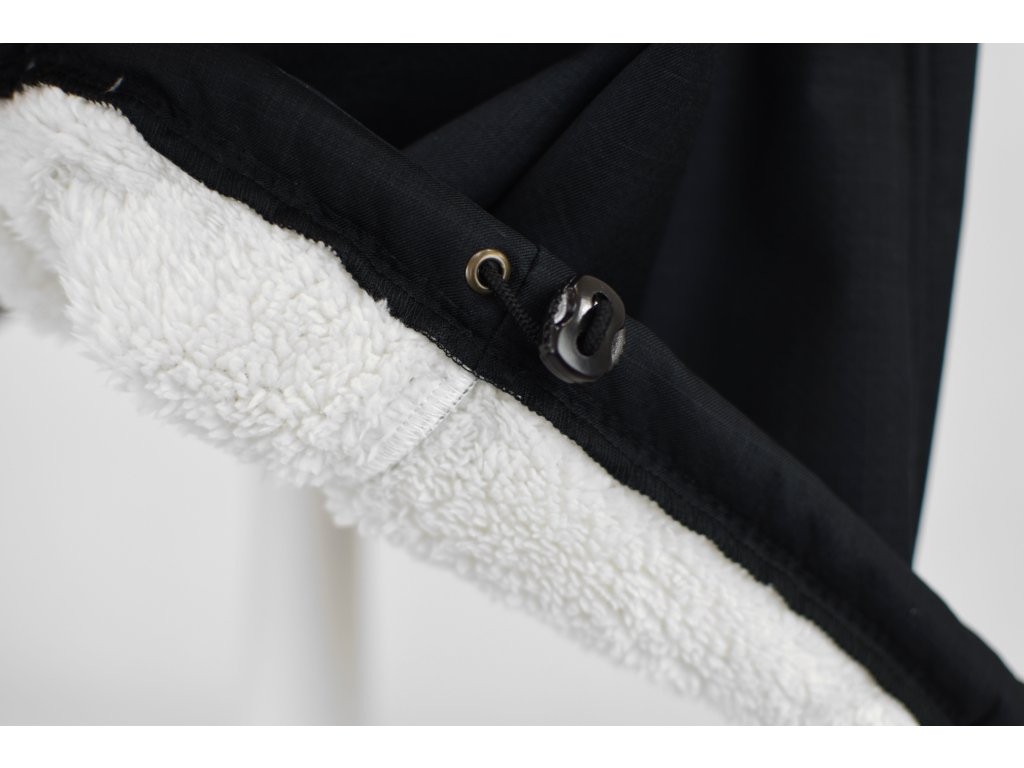 Neodmyslitelnou součástí je chránič brady u zipu. Rukávy jsou s delší švovou záložkou - dají se případně o trochu prodloužit, ale jsou dostatečně dlouhé pro většinu postav. Mají náplet všitý do kraje rukávu, aby dovnitř nefoukalo.
